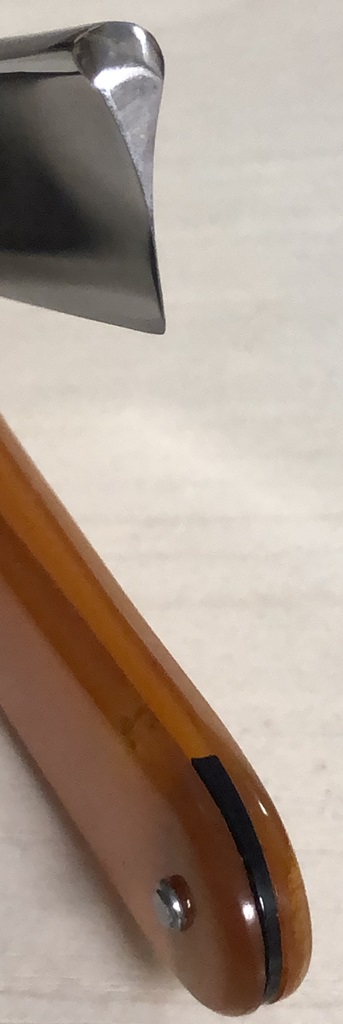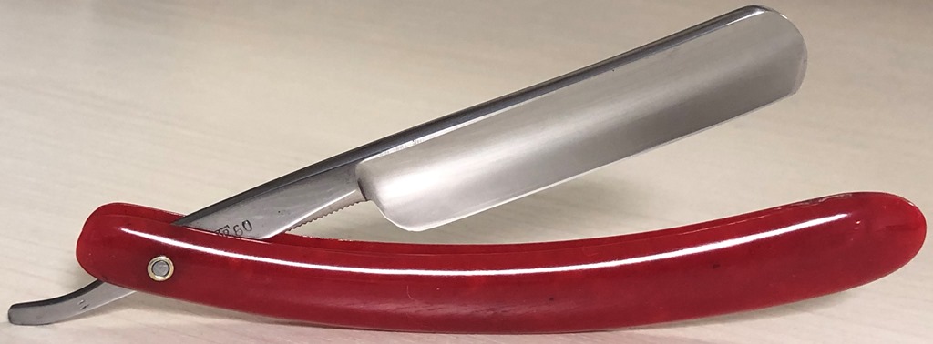 Очень долго лежали у меня две бритвы,на которые я совершенно не обращал внимания, по причине того, что чисто интуитивно они мне не понравились, а визуально сталь клинков показалась мне какой то странной. Но, недавно решил ими заняться и, честно скажу, в этот раз опыт и интуиция меня подвели. Помимо того, что обе бритвы были совершенно непользованными,но со "следами времени", то и сталь прекрасно точилась, доводилась на тонких натуральных абразивах, естественно с прохождением всевозможных тестов. Но, самое главное, первое бритье превзошло все мои ожидания. (обычно, когда у меня есть вопросы и сомнения по поводу той или иной бритвы, то после заточки, на момент бритья, беру с собой ещё одну проверенную бритву,чтобы нормально завершить процесс и не мучить себя некачественным бритьём).Бритье показалось близкое к эталонному, без каких либо неудобств, раздражений и прочих неприятных ощущений. К тому же, сама бритва имеет средний размер и по многим показателям идеально подойдет для новичка,ну а для опытного товарища вообще говорить не приходится. Так как первая бритва так и не дошла до моей темы продаж и была сразу продана, то представлю второй экземпляр.