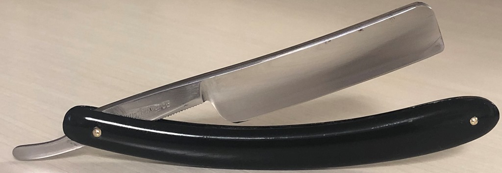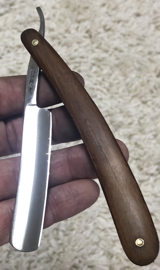 Ширина полотна-17.5 мм Толщина обушка-4.5 мм Полная вогнутость. Углеродистая сталь. Эти бритвы ещё можно где то раскопать, но очень редко встречаются в непользованном и в состоянии близком к идеальному.Данная бритва не была в пользовании,но пришлось разобрать и почистить немного в районе осевого пина. Оригинальная шлифовка полотна, без вмешательства. Если не брать несколько незначительных "точек времени" на клинке(которые нарочно не стал убирать, чтобы сохранить аутентичность полотна), состояние полотна идеальное, без каких либо видимых дефектов.Пины удалось поставить родные, которые и были.Идеальная геометрия клинка:кромочка равномерна по всей длине и практически незаметна.Изображение моста четкое, без потертостей.По своей форме лезвия и размерам очень хорошо пойдет не только в коллекцию, но и для новичка.Заточена и готова к бритью. Цена-4300 р с доставкой. ПРОДАН Внимание! Важная информация! Spoiler Show