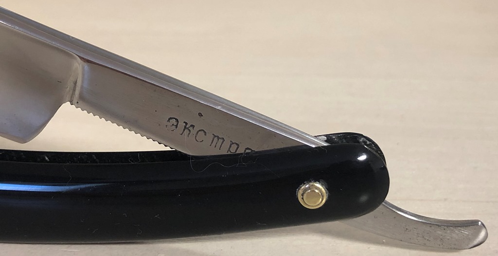 Ширина полотна-16 мм Толщина обушка-4 мм Форма лезвия-1/2 клина. Углеродистая сталь. Год производства-1939 г. Бритва в хорошем состоянии. Разобрал, почистил клинок и снова собрал. Немного рытвинок оставил в районе эрля, чтобы не стирать клеймо, но смотрится так даже более натурально, для бритвы, которая пережила войну.Ручка с большой долей вероятности родная, имела изначально пины шляпкой, какие ставились изначально на эти бритвы.Пины, естественно поменял, поставив немецкие втулки, с добавлением внутренних шайб. По всей видимости бритвой пользовались мало, так как совершенно не стерт обушок,да и геометрия полотна идеальная:кромочка равномерна по всей длине.Я видел несколько оригинальных "МОСШТАМПОВ",с родной полировкой в"зеркало", поэтому и эту бритву полировал немного больше, чем обычно бритвы других советских марок. В общем и целом бритовка очень приятная получилась и вполне будет годна не только для пополнения коллекции, но и для бритья.Заточена и готова к бритью. Цена-3800 р с доставкой. ПРОДАН Spoiler Show Spoiler Show