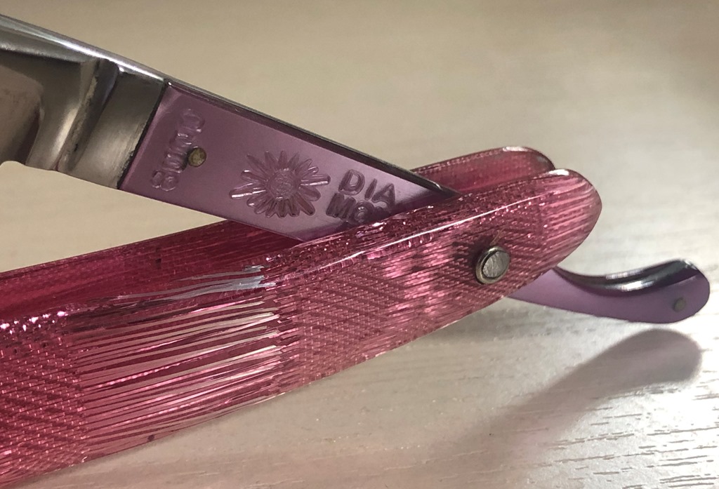 Японская бритва 8000 DIA-MON-D, от компании " H. Diamond'.(Компания " Hayashi. Diamond' была основана в городе Аракава-Ку, Токио. Это была фабрика' Хаяши Ичитаро", известного кузнеца Hayashi Ichitarō = 林公太郎 ) Ширина полотна-21 мм Толщина обушка-6 мм Полная вогнутость. Углеродистая сталь. Примерная дата производства-50-60-е годы 20-го столетия. Бритва с минимальными следами использования.Обушок не имеет уточенности, в связи с чем я и сделал вывод, что бритва моло точилась и эксплуатировалась. Немного почистил клинок от патины, но немного следов осталось.( Не стал снимать много "мяса" под обушком и оставил как есть, из за незначительности дефекта на дальнейшее использование.Этим самым удалось сохранить оригинальную форму полотна).Кромочка равномерна по всей длине. Бритва имеет пластиковые накладки на эрле, что будет удобно прежде всего в плане эксплуатации:не нужно уделять особого внимания удалению влаги на металле, после бритья.Достаточно крупная и тяжелая бритва, с очень неплохой сталью, в комплекте с эффектной, яркой ручкой и накладками, в цвет, будет отличным вариантом для любого пользователя. Заточена и готова к бритью. Цена-6500 р с доставкой Внимание! Важная информация! Spoiler Show
