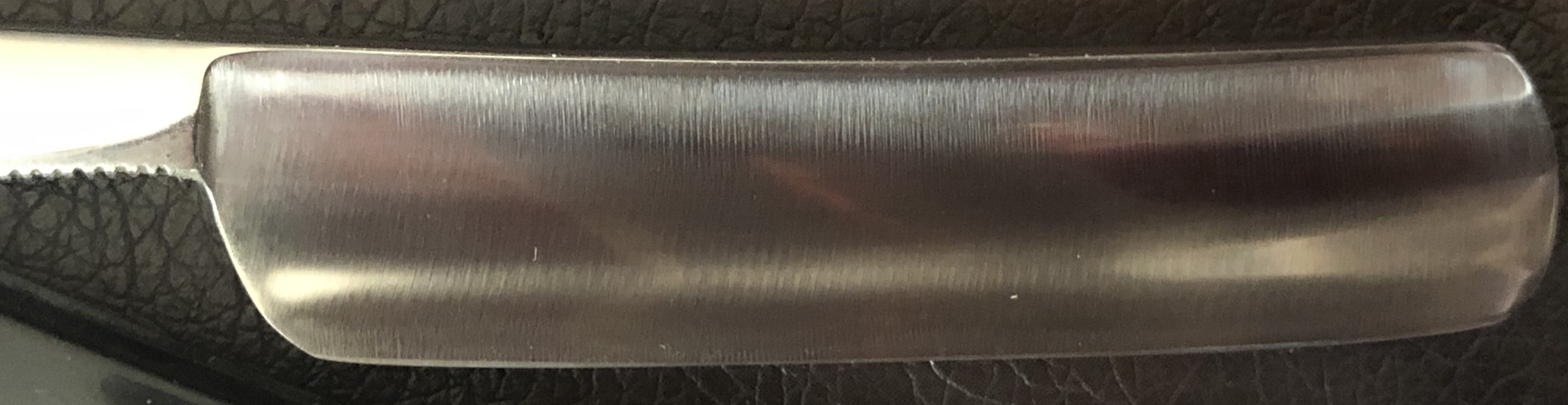 Бритва в пользовании не была, но требовала разборки и чистки клинка от разного рода патины и окисления металла. Родной осевой пин удалось поставить обратно, как и примерно воссоздать "оригинальную" шлифовку полотна.Как по мне, бритва сейчас находится в очень хорошем состоянии, близком к идеальному. Сталь чистая, геометрия также идеальная. Кромочка еле заметна и равномерна по всей длине.Приятно выраженный изгиб обушка.Коробочка хоть и от стиза, но от другом модели.Но, чем богаты, как говориться.Отличный недорогой вариант как в коллекцию, так и для новичка.
