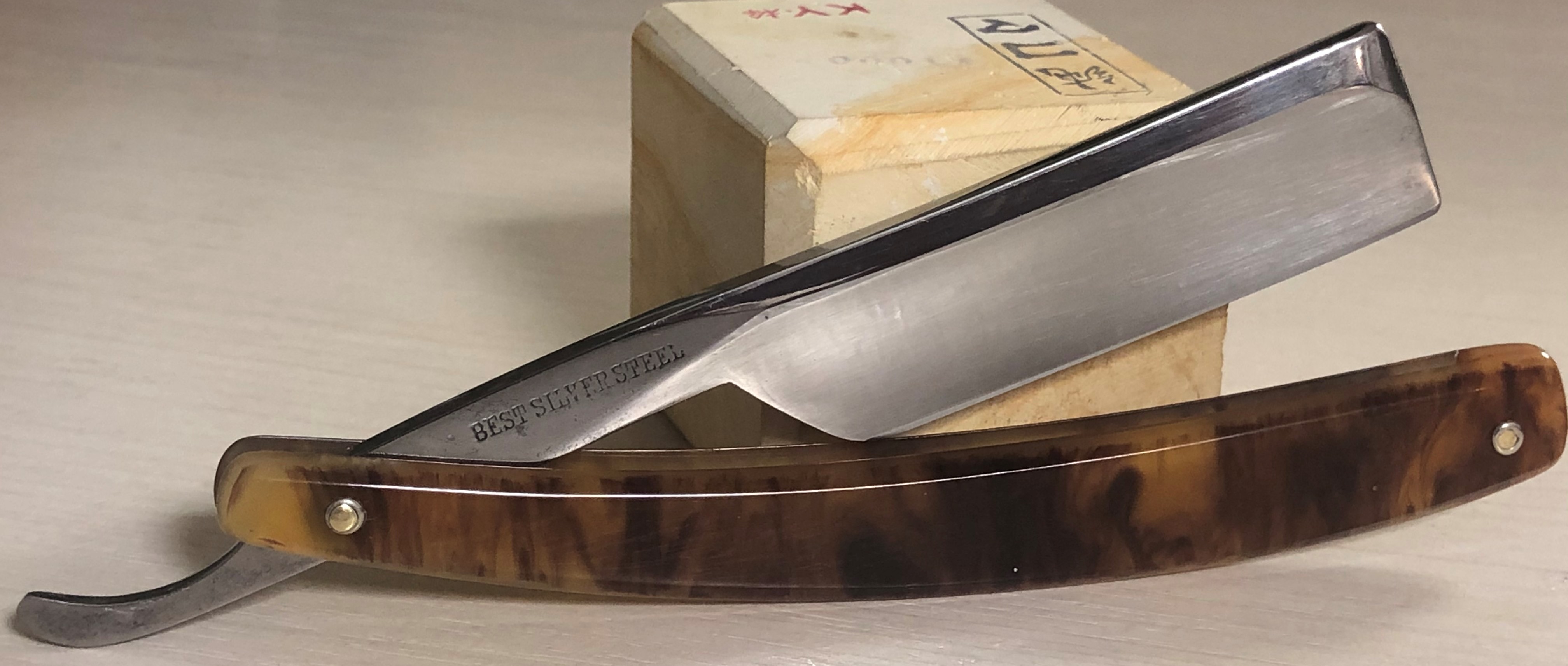Ещё одна бритва, форма которой не часто встречается у японских производителей прошлого.