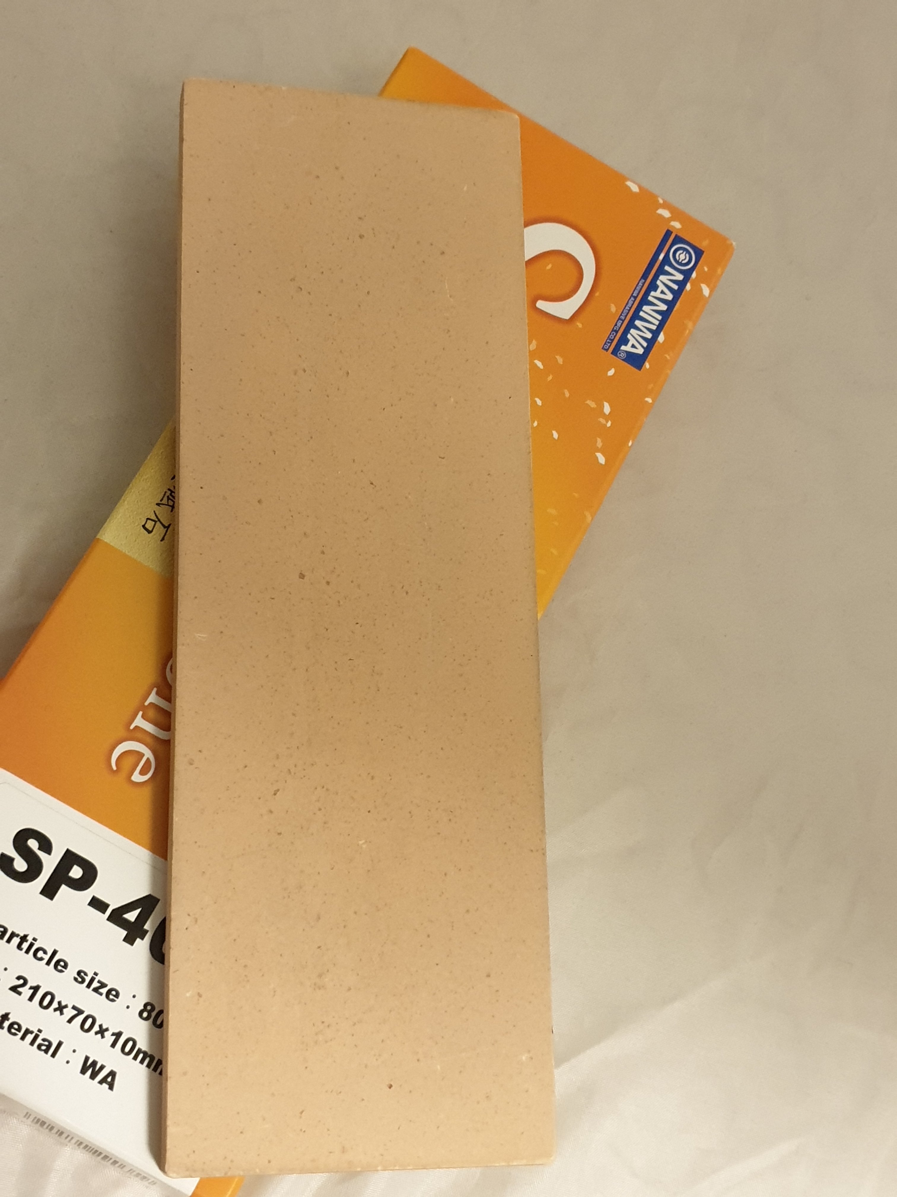 Продаётся от S&T62. Камень заточный синтетик Naniwa 800 грит. С небольшим пробегом, без трещин и прочих дефектов. Был куплен с США в магазине Ллина Абрамса. Продается в связи с переходом на Чосера 1к. Был притерт одной стороной на порошке карбида кремния. На двух фото показаны обе стороны камня. Сейчас толщина 9,6+мм из 10 исходных.