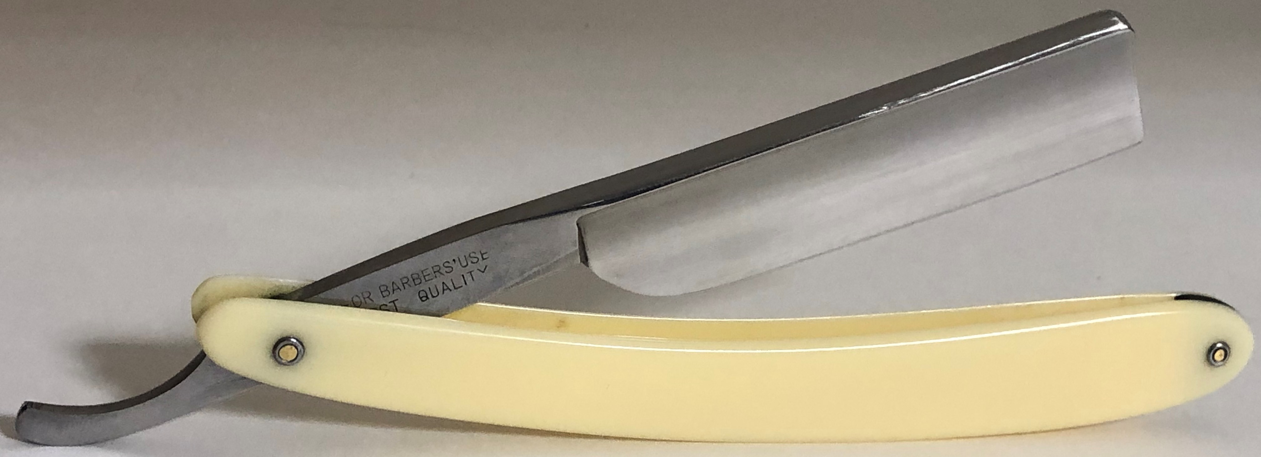 Ширина полотна-16 мм Толщина обушка-4.5 мм Полная вогнутость. Углеродистая сталь. Клинок немного почистил, оставив незначительные "следы времени". Взамен сломанной ручки поставил оправу от американского донора начала 20-го века.Идеальная геометрия.Очень приятная бритва во всех отношениях.Заточена и готова к бритью. Цена-3300 р с доставкой.ПРОДАН Spoiler Show