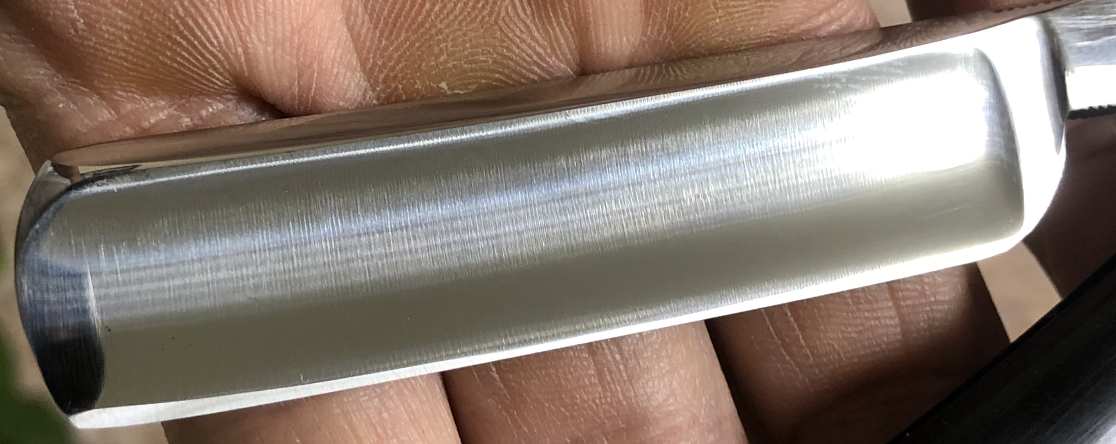 Ширина полотна-17 мм Толщина обушка-4 мм Полная вогнутость. Углеродистая сталь. Бритва в идеальном состоянии, без признаков пользования и износа.Можно сказать внешний вид новой.Бритву разобрал, чтобы поправить кривой пин, заодно и почистил район эрля от окисления.Дополнительно установил внутренние шайбы, для надежности.Идеальная геометрия клинка:кромочка равномерна по всей длине.Сталь и кромка чистые, без видимых дефектов.Очень хороший вариант для новичка,в качестве первой и недорогой.Родная коробочка в комплекте. Заточена и готова к бритью. Цена-3800 р с доставкой.[/b][/QUOTE] ПРОДАН Внимание! Важная информация! Spoiler Show