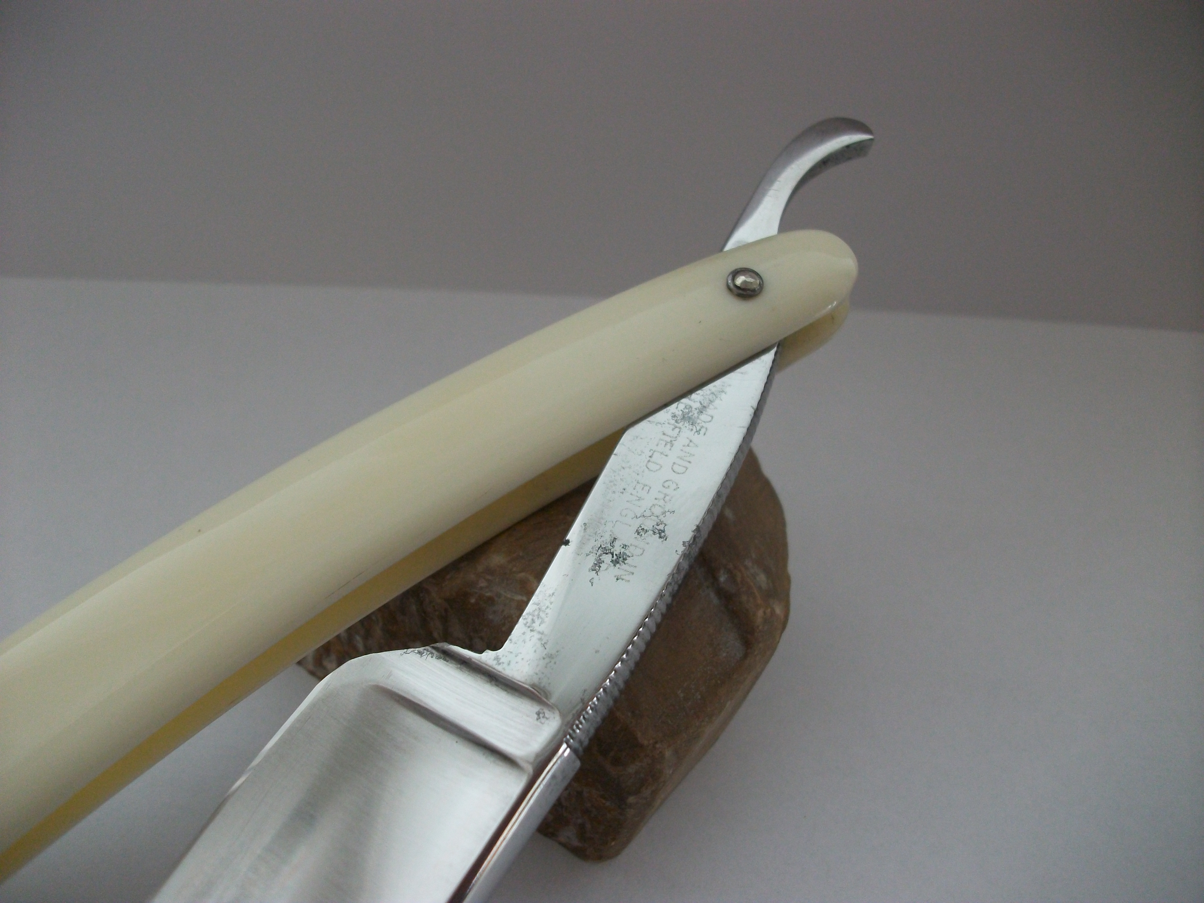 Интересный гринд (ложный фреймбек, но достаточно своеобразный). Углеродистая сталь, ширина полотна 20мм, длина режущей кромки примерно 74мм. Отличный вариант в коллекцию. Заточена и готова к бритью. Продано Spoiler Show