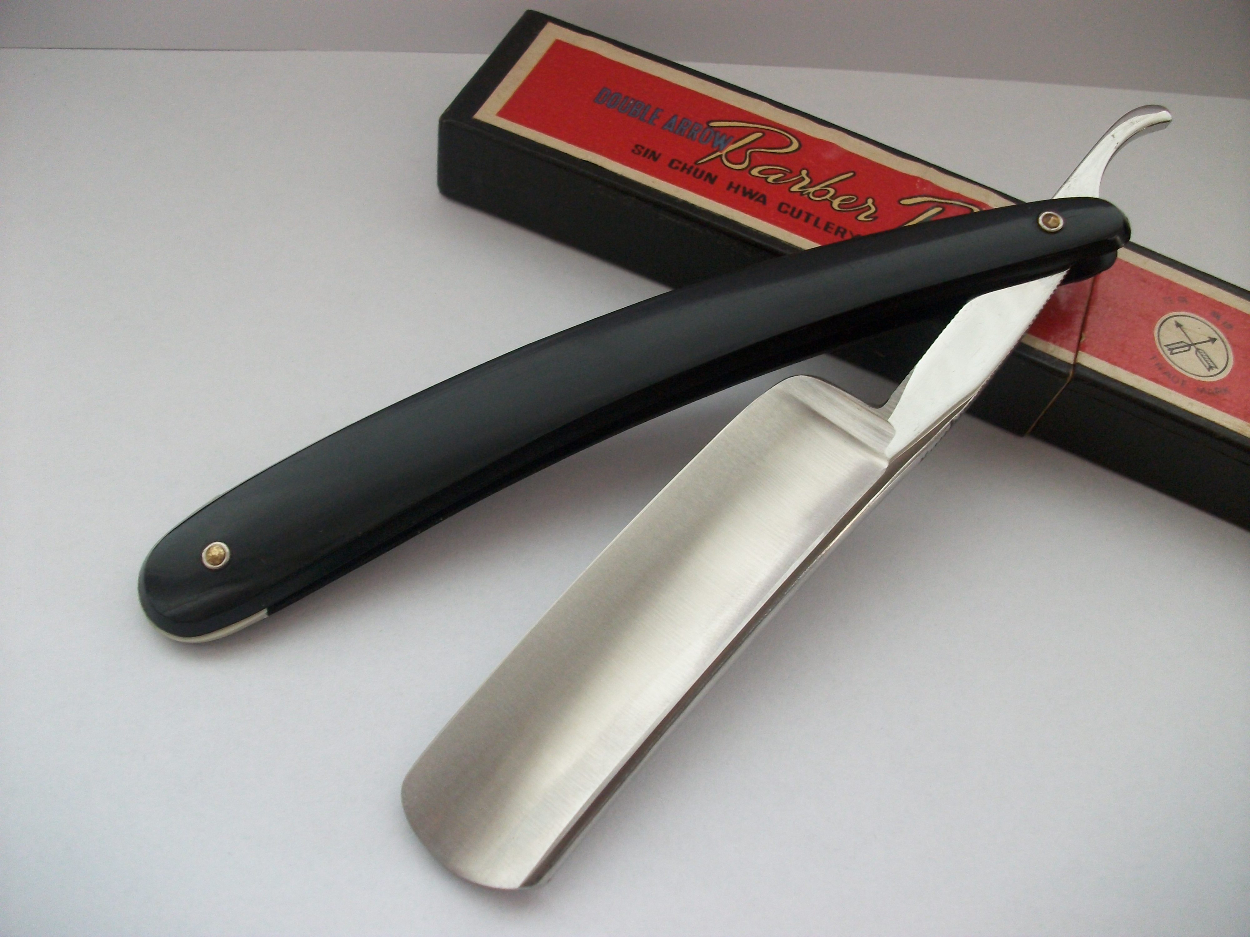Углеродистая сталь, ширина полотна 15мм, длина режущей кромки примерно 70мм. Полотно в хорошем состоянии - родной сатин и травление. Сталь в работе очень понравилась. Ручка пластик. Заточена и готова к бритью. Продано Spoiler Show