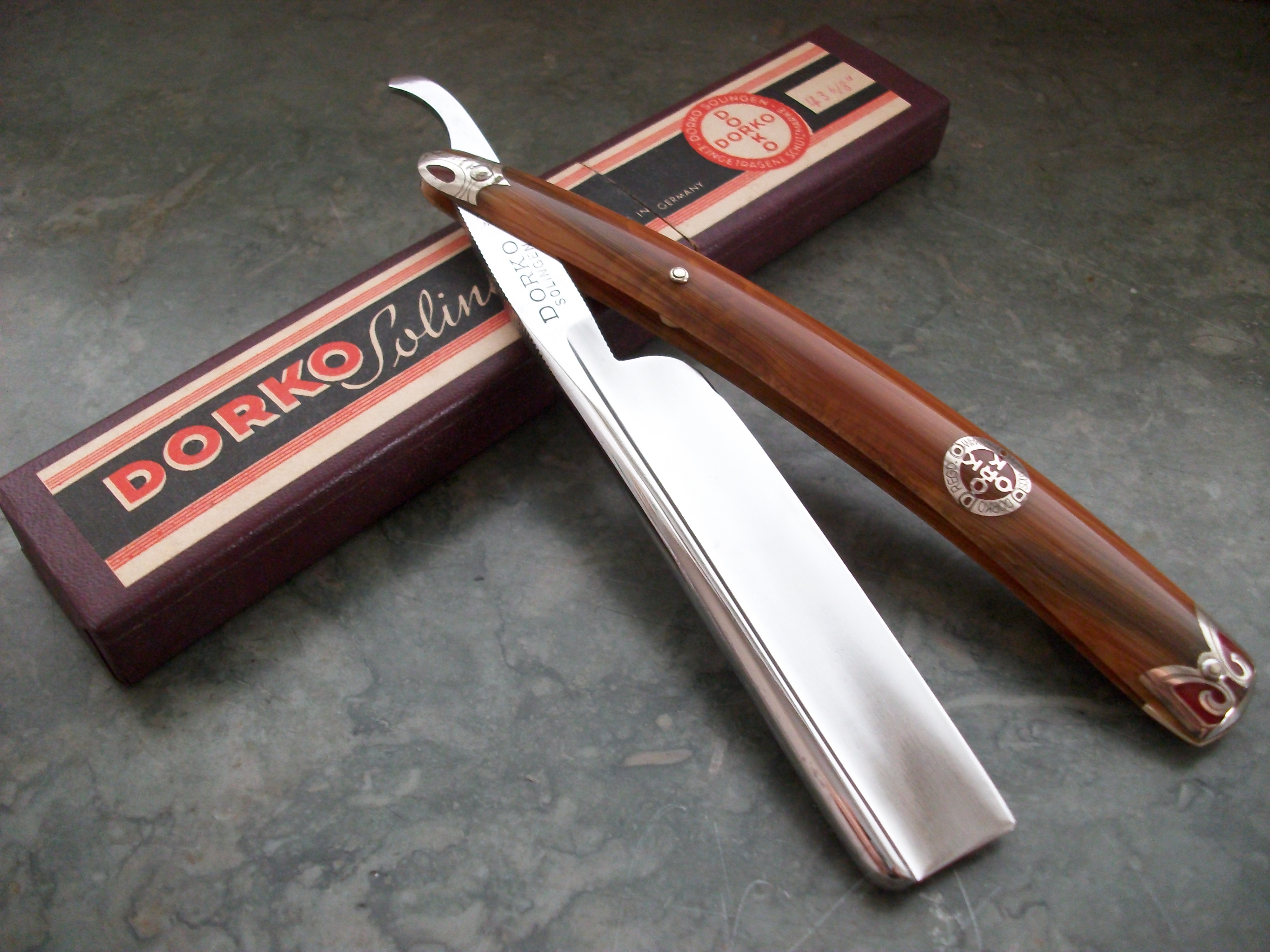 Углеродистая сталь, ширина полотна 15мм, длина режущей кромки примерно 70мм. Полотно в хорошем состоянии - родной сатин и травление. Сталь в работе очень понравилась. Ручка пластик. Заточена и готова к бритью. Продано Spoiler Show