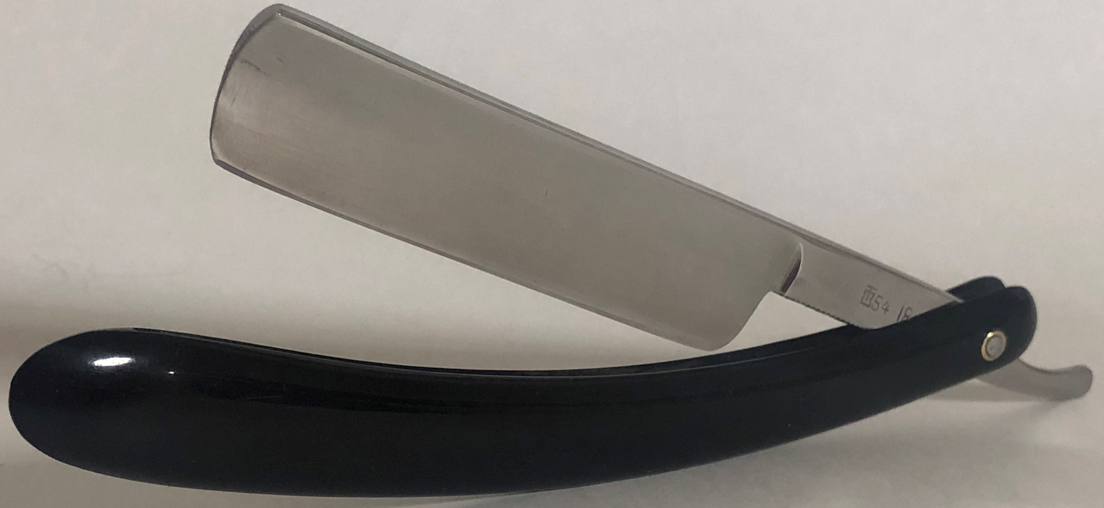 Бритва по всей видимости в пользовании не была, но пришлось разобрать, почистить металл без фанатизма и в меру своих возможностей.Кое какие малозначительные "следы времени" остались, но никоим образом не повлияют на дальнейшую эксплуатацию.Бритва профессиональная, "для парикмахерского использования".Идеальная геометрия полотна:кромочка равномерна по всей длине и практически незаметна.Отличная "звонкая" сталь, средней твердости, способна выдавать качественное и мягкое бритье.Пины заменил на немецкие втулки, с добавлением внутренних шайб.Бритва идеальна , исходя из формулы-цена/качество.Заточена и готова к бритью.