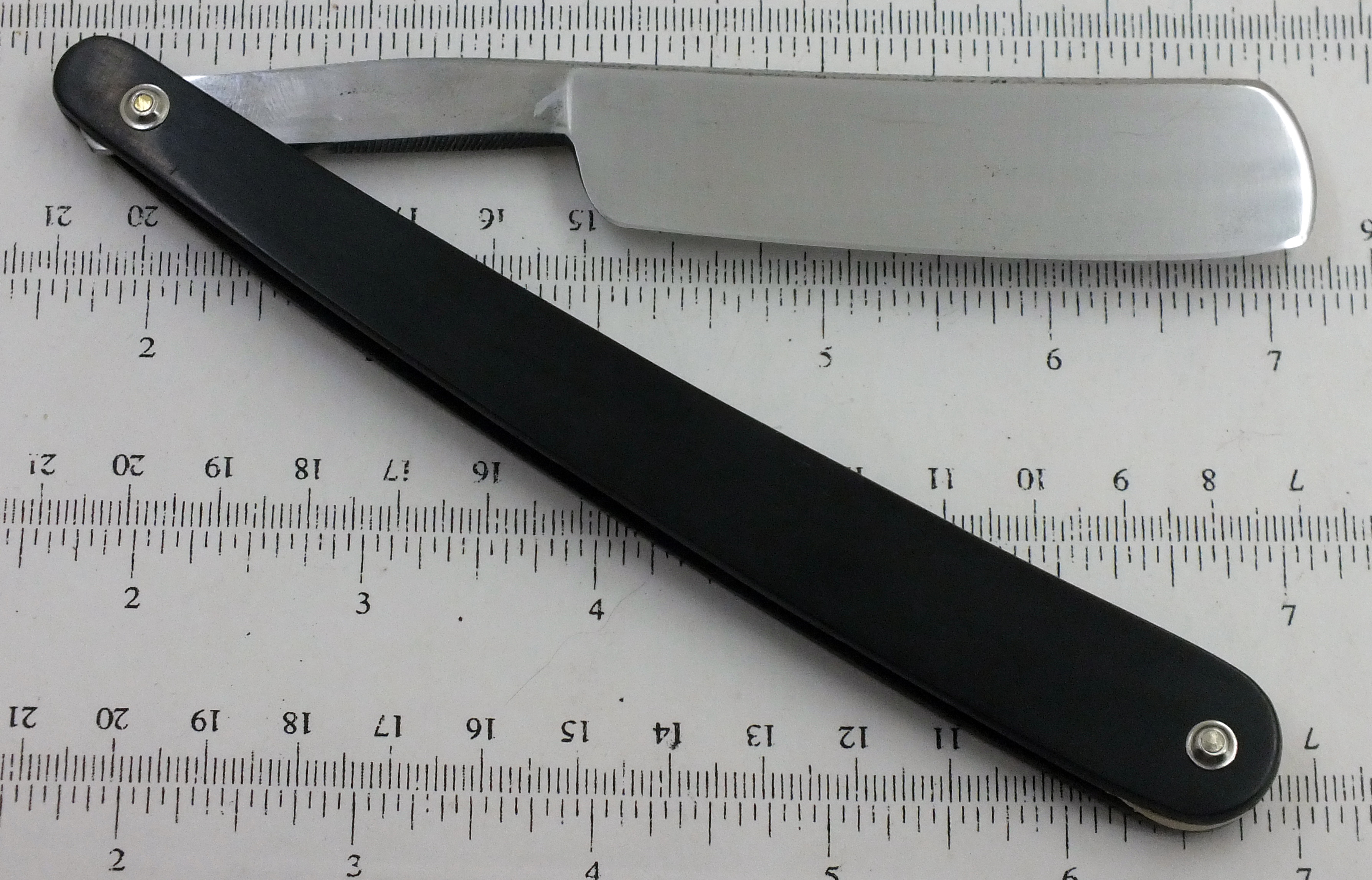 7/8+ (22,7 мм.) , почти клин. Углеродистая сталь, рог, кость. Оправа заменена. Бритва после реставрации. Следы времени остались. Заточена и готова к бритью. Бреет великолепно. Мягко и комфортно, как все бритвы домартеновской эпохи. Продана на другом ресурсе. Spoiler Show