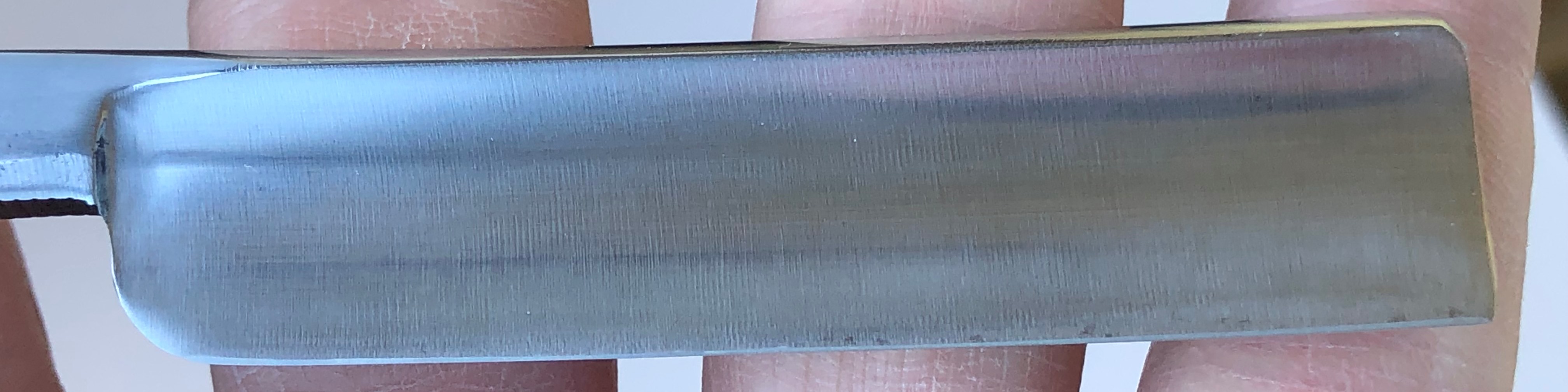 Ширина полотна-20 мм. Толщина обушка-5.5 мм. Углеродистая сталь. Форма лезвия-1/2 клин. Середина 20-го века. Интересная бритва, с достаточно редким для японца парикмахерским вырезом. Без следов пользования.Бритва была разобрана чтобы немного очистить район осевого пина.Сейчас выглядит как новая.Идеальная геометрия полотна:кромочка равномерна по всей длине.Среднего размера, но за счет своей формы лезвия,достаточно увесистая.Красивый и надёжный инструмент.Заточена и готова к бритью. Цена-11500 р с доставкой. ПРОДАН Внимание! Важная информация! Spoiler Show