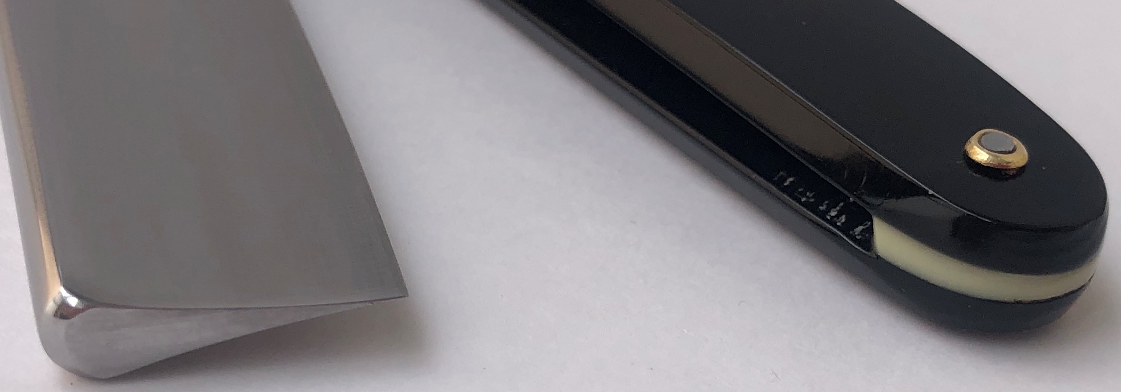 Ширина полотна-21 мм. Толщина обушка-5.9 мм. Форма лезвия-1/2 клина. Серебряная шведская углеродистая сталь. Примерно 50-60-е годы прошлого века. Бритва в очень хорошем и малопользованном состоянии. Разобрал, немного освежил металл клинка и снова собрал, с заменой пинов на немецкие втулки. Идеальная геометрия полотна:кромочка равномерна по все длине.Сталь и кромка чистые от разного рода видимых дефектов.Эффектная ручка"под черепаху".Тяжёлая, но за счет своего укороченного полотна верткая бритва, под разные задачи.Не часто сейчас встречаются укороченные японцы, так что не пропустите. Цена-11500 р с доставкой. ПРОДАН Spoiler Show Spoiler Show