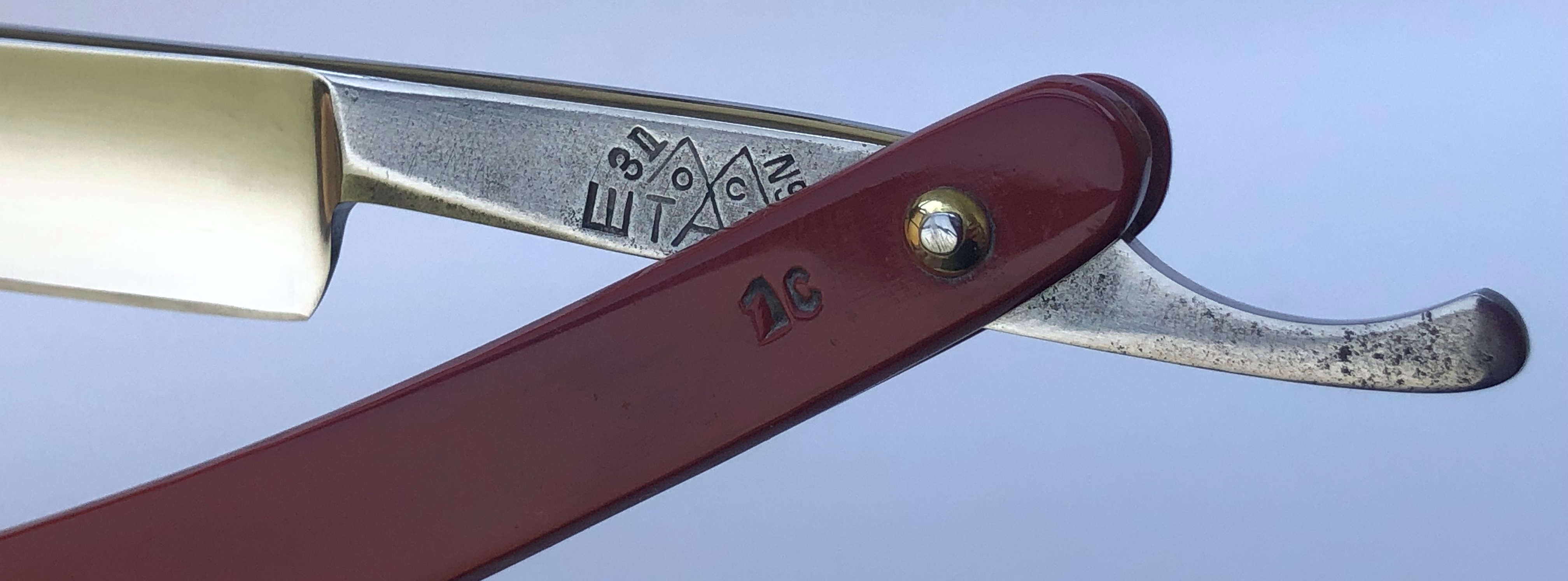 Кто бритву реставрировал и шлифовал полотно, мне не известно. По всей видимости бритва не разбиралась.Шлифовка аккуратная,кромочка ровненькая.Не стал ничего разбирать и чистить в районе осевого пина, но следы времени никоим образом не повлияют на процесс эксплуатации.