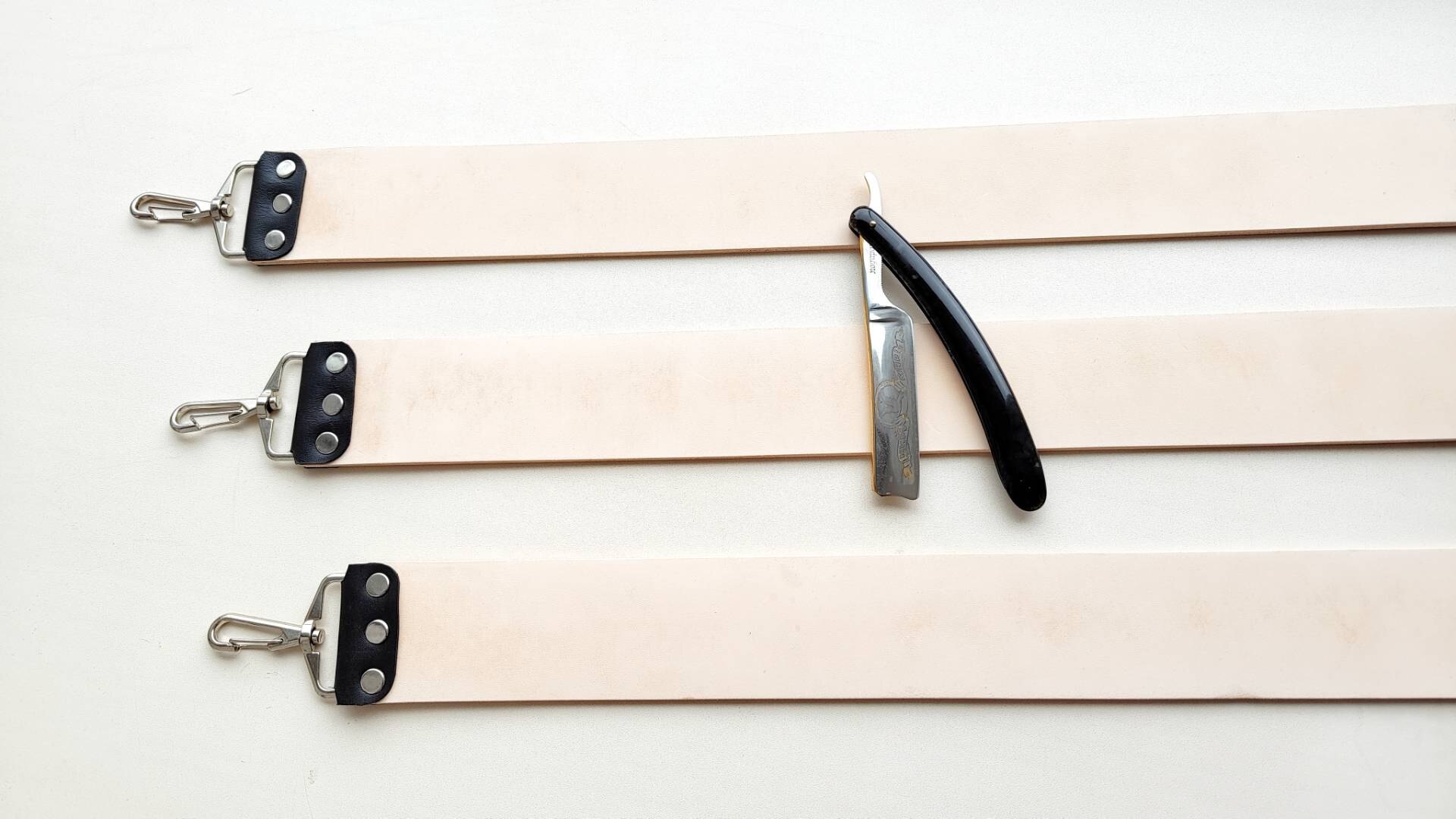 Ремень для правки опасных бритв, стандартный, 51 мм, итальянская кожа КРС растительного дубления (чепрак). На ощупь ладонью ощущается очень мелкий и бархатный микроворс - под быструю и эффективную правку бритв любой твёрдости, как раз он и правит кромку. Ремень подготовлен к правке, поверхность прокатана и отшлифована до Р2500. На поверхности кожи могут быть более тёмные места, на работу не влияет. Это "растишка", она не подвергалась хим. дублению и окрашиванию, поэтому могут быть участки, отличающиеся по цвету, на правку это не повлияет. Нержавеющая фурнитура, удерживающие элементы из натуральной кожи, все ремни новые, изготавливаю сам. Длина ремня - от 500 мм Ширина - 51 мм Толщина кожи - 3.8-4 мм. Инструкцию по использованию и хранению ремня вышлю, опасная бритва с фото не продаётся. Цена 2750 руб. Spoiler Show
