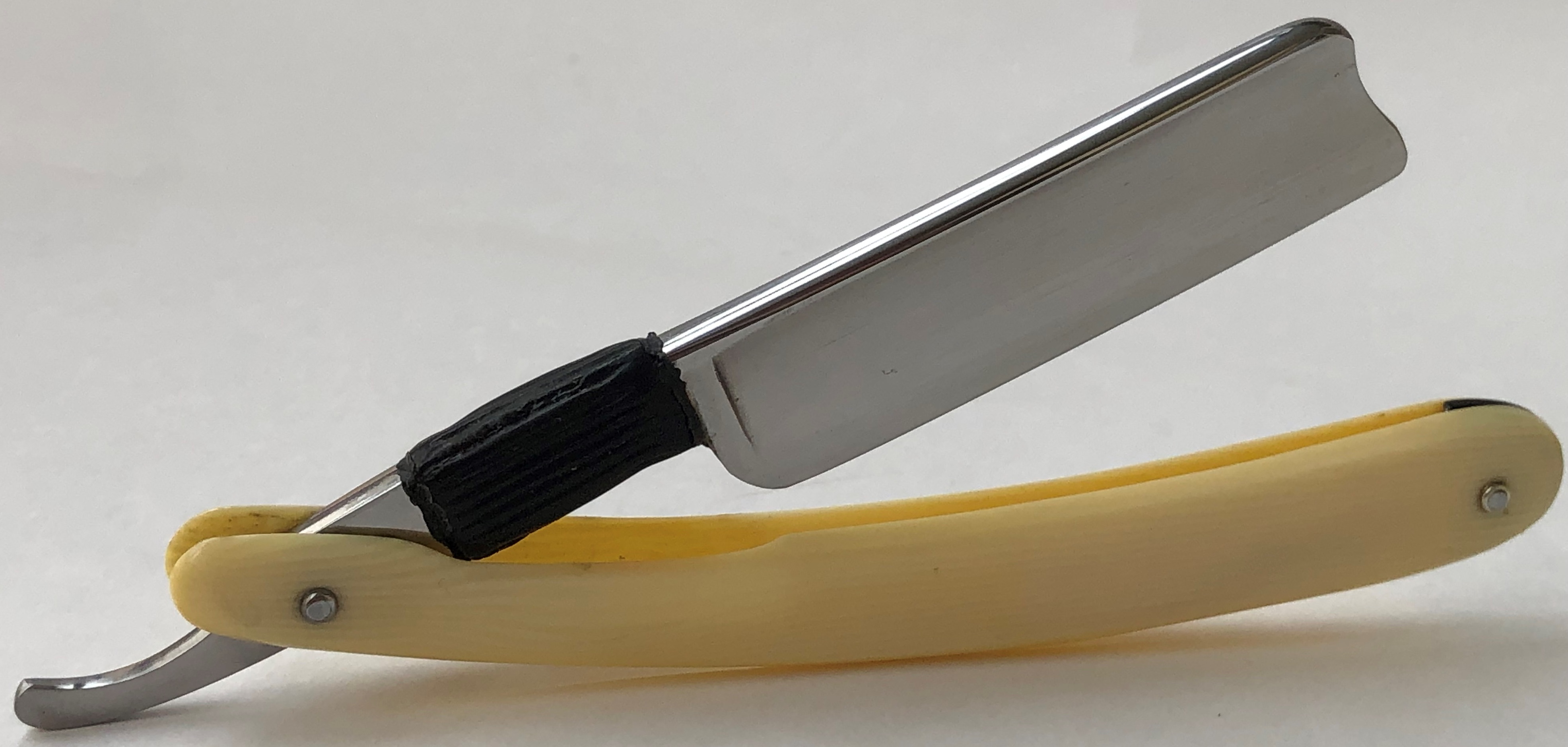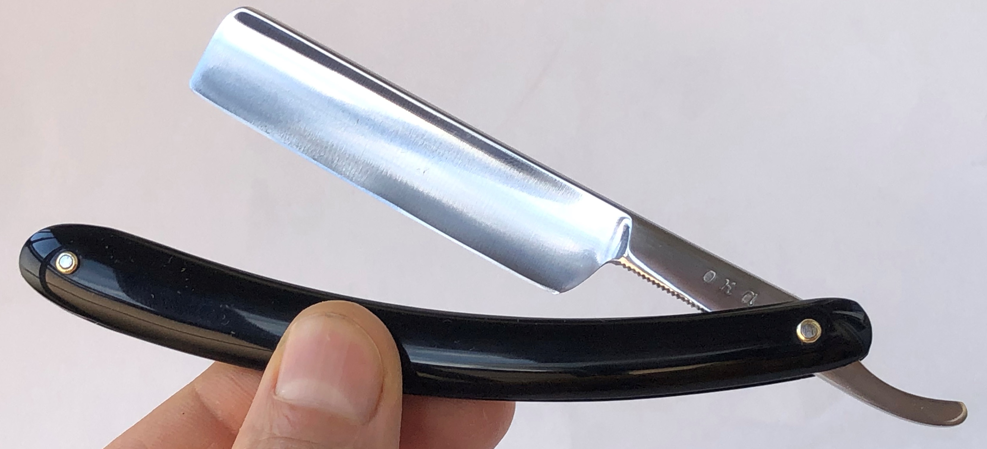 Ширина полотна-18.0 мм. Толщина обушка-5.0 мм. Полная вогнутость. Углеродистая сталь. Первая половина прошлого века. Привел в порядок старушку. Еще послужит долго.Перешлифовал и переполировал клинок. Замена пинов и внутренних шайб.Очень хорошее , рабочее состояние.Кромочка равномерна по всей длине. Красивая пластиковая ручка,"под черепаху".Удобная форма лезвия для новичка прежде всего, а также пойдет любому пользователю. Заточена и готова к бритью. Цена-9500 р с доставкой.ПРОДАН Spoiler Show