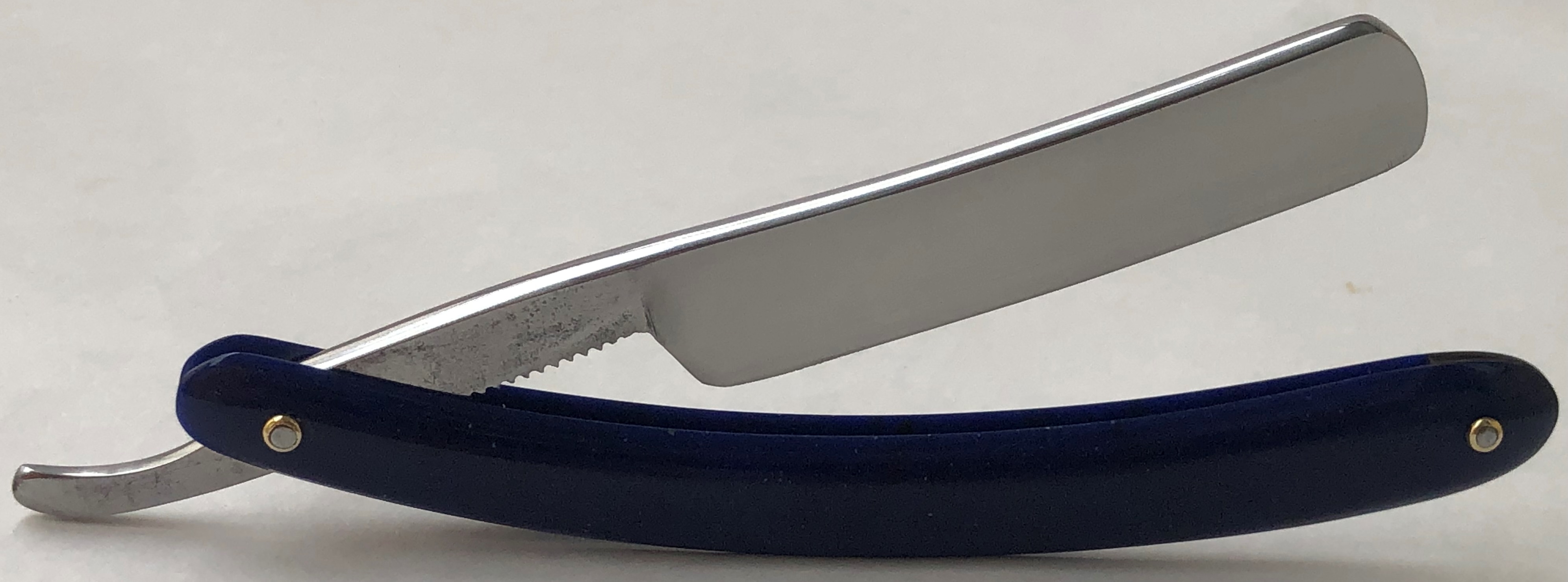 Бритва в состоянии близком к идеальному.Без следов пользования и износа металла.Была разобрана для проведения минимальных косметических работ.Умеренная шлифовка и полировка клинка. Идеальная геометрия полотна:кромка равномерна по всей длине.Удобная форма бритвы, чисто в английском стиле, очень удобна для новичка, а также в коллекцию.Очень хорошая сталь.