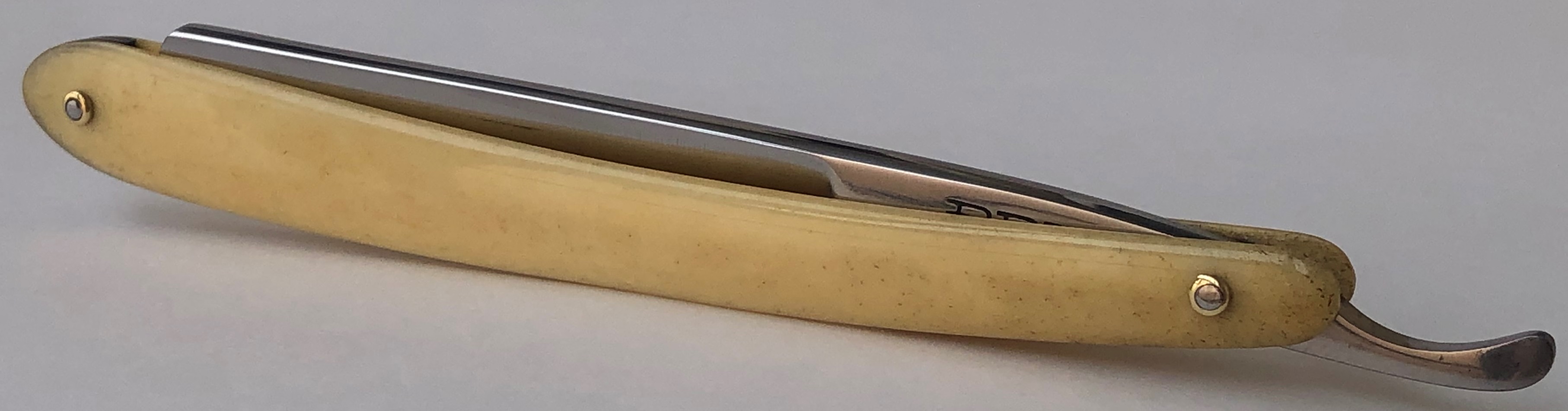 Редкая бритва, на моей памяти ничего подобного никогда не попадалось, особенно в таком непользованном или малопользованном состоянии.Была разобрана, для удаления следов окисления металла, а также с добавлением внутренних шайб.Идеальная геометрия полотна:кромка равномерна по всей длине.Сталь и кромка чистые, без видимых дефектов. Шикарная оригинальная оправа из натуральной кости.Бритва заточена и лично протестирована. Очень качественное и чистое бритье. Не пропустите редкую вещь в свою коллекцию.