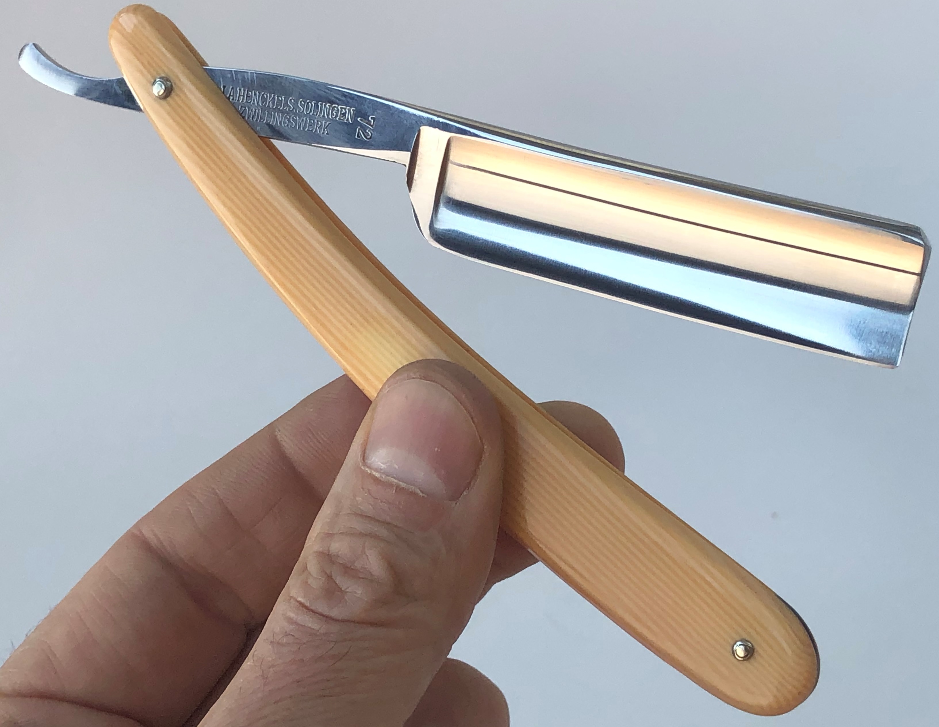 Чистая немка.Для любителей аутентичности.Бритва в хорошем, аккуратно пользованном состоянии. Специально ничего с бритвой не делал. Все в оригинале. Ничего не разбиралось и не ремонтировалось.Родная шлифовка и полировка. Следы старинной патины имеются, как естественный вид такого антикварного инструмента.Идеальная геометрия клинка:кромочка равномерна по всей длине.