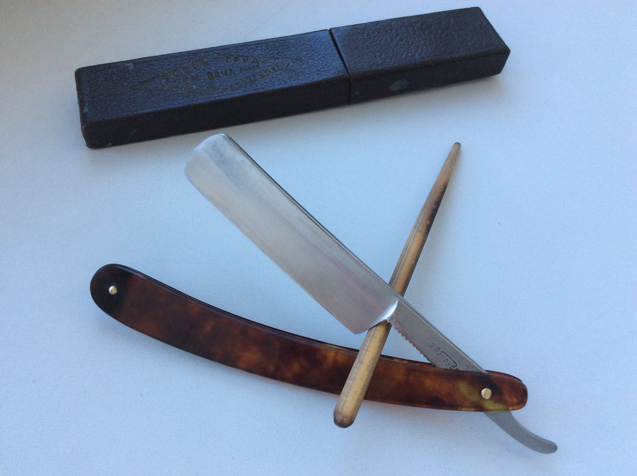 Продаётся от sergeyt3770ПРОДАНО Немецкая бритва Böntgen & Sabin. Старый, известный производитель, перед и во время Второй мировой, выпускающий кинжалы и штыки. Бритва в использовании не была, не разбиралась. Размер 5/8 (ширина 16 мм., толщина 4,5 мм.). Кромка тонкая, ровная. В районе эрля небольшая патина, на бритьё не влияет. На эрле пластиковая накладка, защищающая металл от коррозии. Бритва заточена и готова к работе.