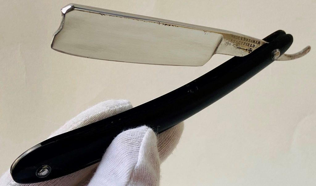 Бритва в пользовании не была. Не имеет следов утОчки обушка и утраты ширины полотна.Была разобрана для минимальных косметических работ, по удалению старинной патины и микро царапин.Новые втулки вместо пинов, а также добавлены внутренние шайбы.Шлифовка "под завод" и умеренная полировка.Идеальная геометрия полотна:кромочка равномерна по всей длине и еле заметна.Самая удачная и удобная модель от SK. Не пропустите реально редкую , красивую и практичную вещь для своей коллекции.