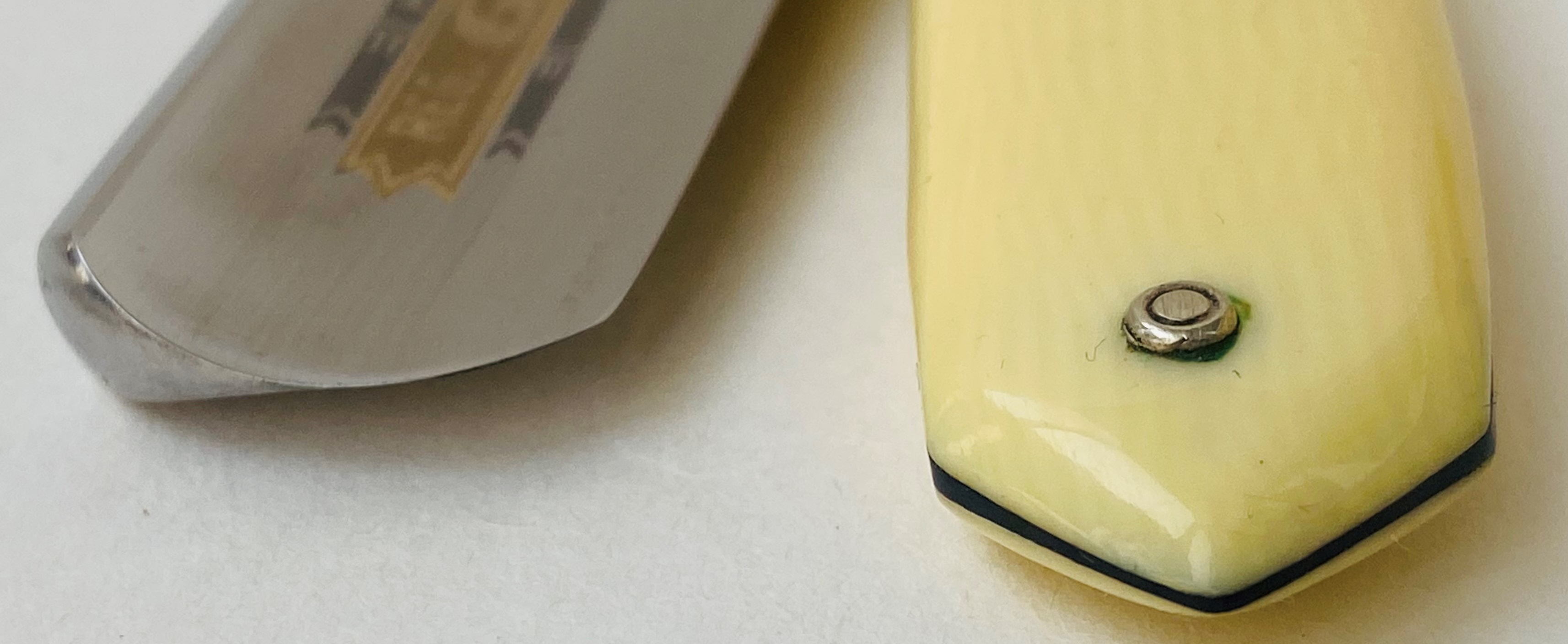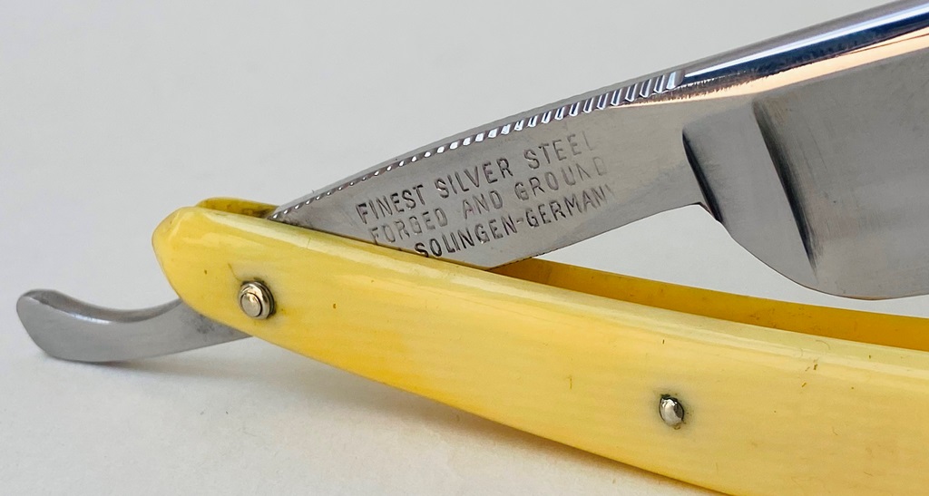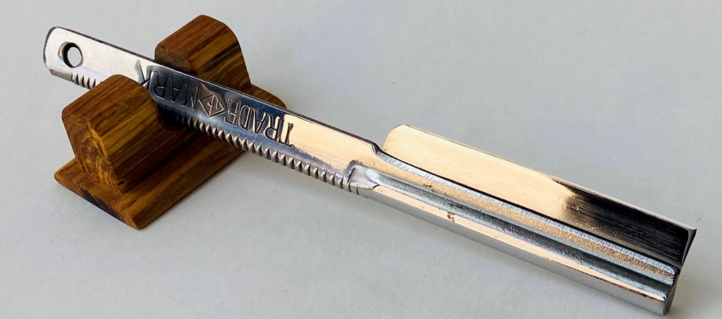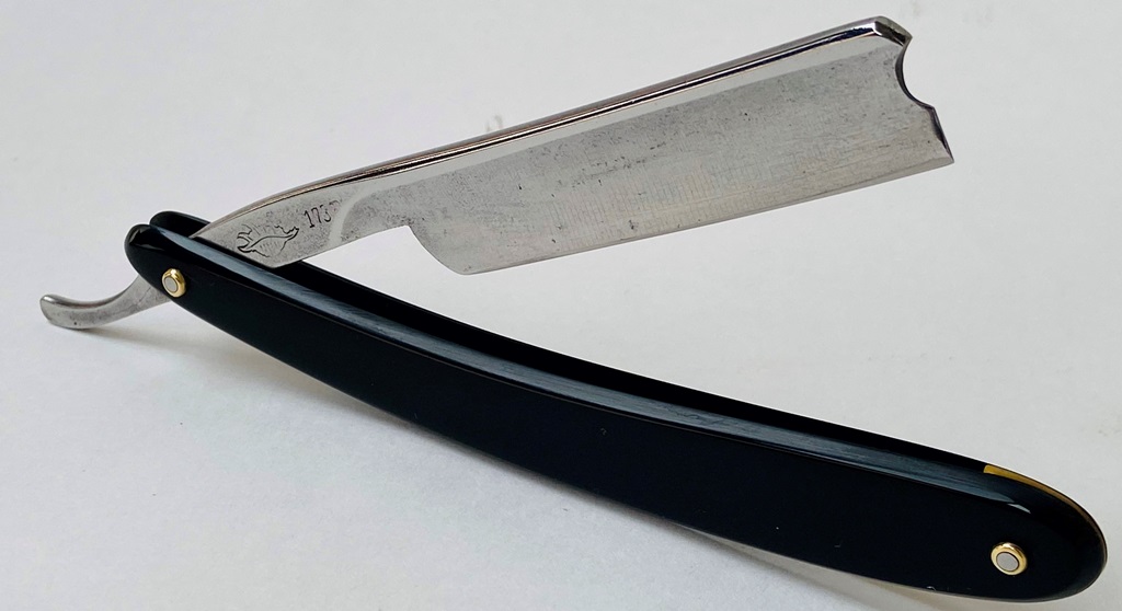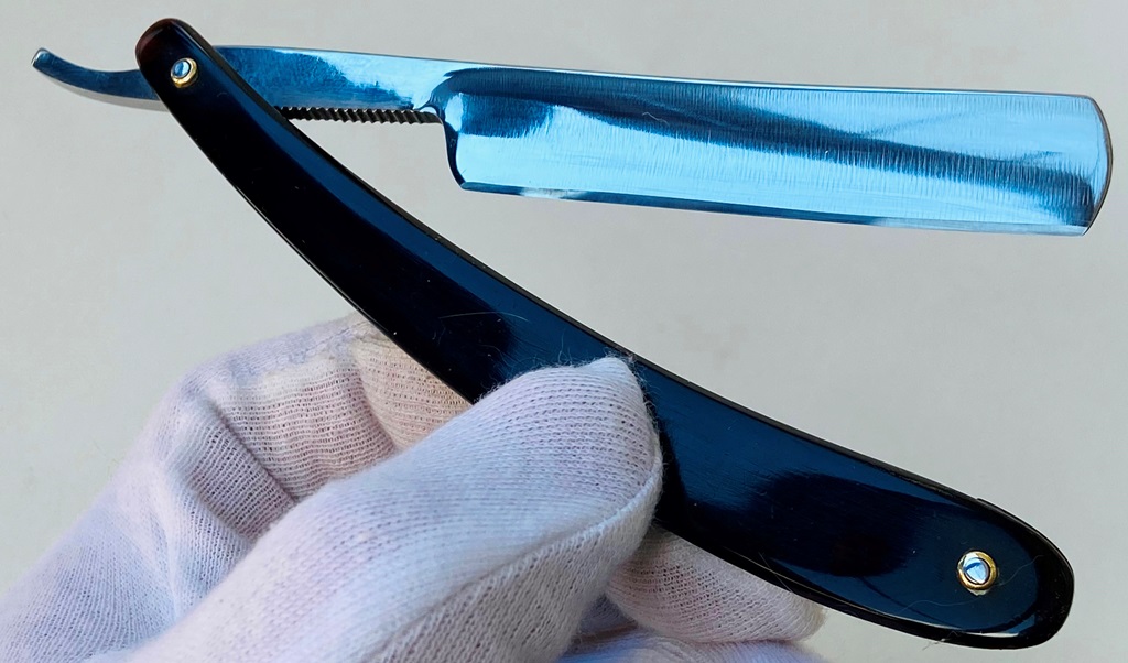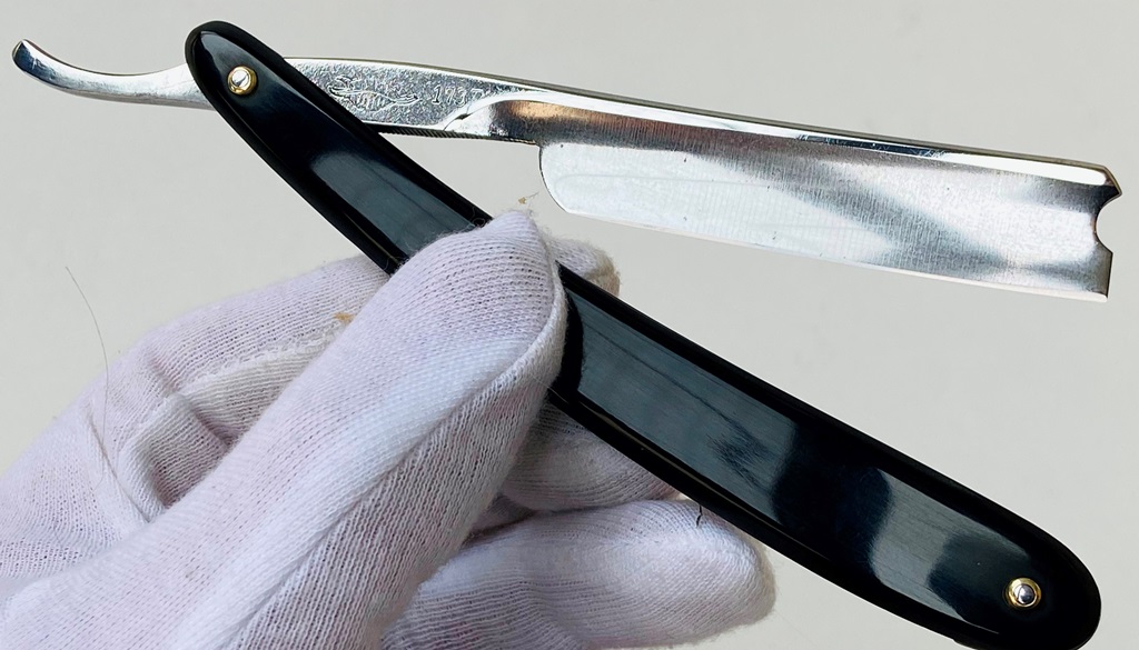 Ширина полотна-17.5 мм. Толщина обушка-4.5 мм. Форма лезвия ближе к полу-клину. Углеродистая сталь. Информации по производителю не нашел,но по косвенным признакам, а также исходя из своего опыта,могу сказать,что бритва начала 20-го века.Возможно была сделана на рубеже 19 и 20-х веков. Бритва в прекрасном состоянии и без видимых следов пользования. Скорее в пользовании не была,хотя за столько времени могло быть всё.. Бритву разобрал,немного освежил металл и заново собрал, с сохранением внутренних шайб и оригинальных пинов.Идеальная геометрия полотна:кромочка равномерна по всей длине и еле заметна.Барберский носик. Бритва заточена и готова к бритью.Была лично протестирована.Могу сказать, что в бритье тут классическая немка:своенравная,дерзкая, не прощающая ошибок. Но в тоже время всегда выполнена на самом высоком уровне,как все немецкое.. В итоге,чистое и комфортное бритье,с неким "металлическим" характером сбриваемой щетины. Можно где то сравнить с советскими Вачами и Росинструментами военного периода. Короче, отличная и недорогая старинная вещь. Не пропустите. Цена-9500 р с доставкой. Внимание! Важная информация! Spoiler Show