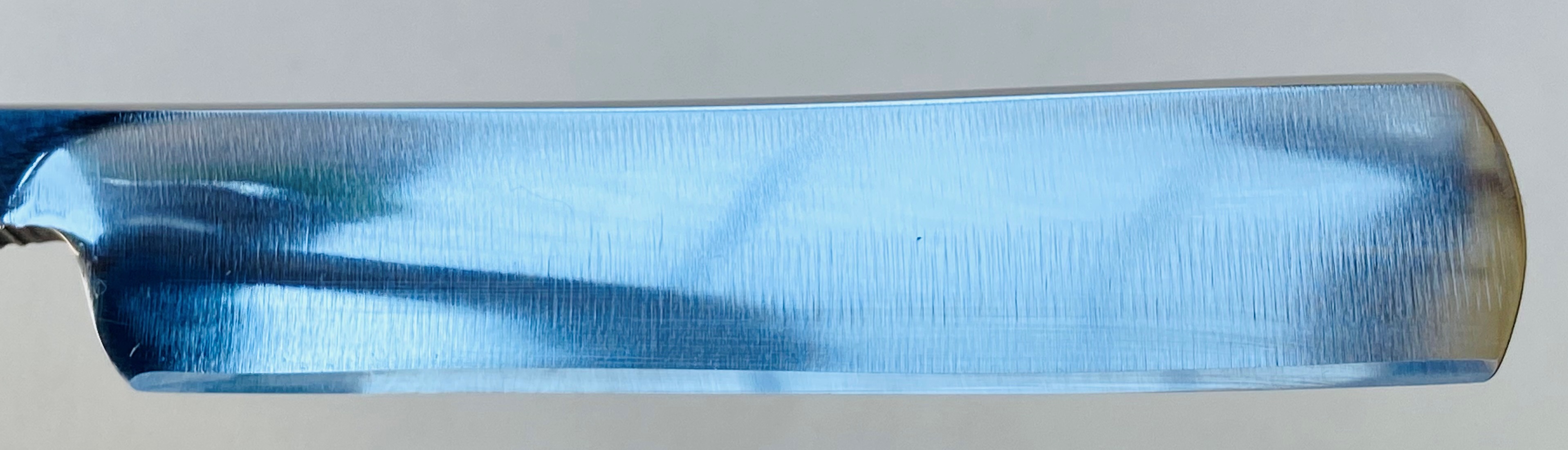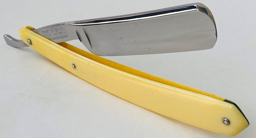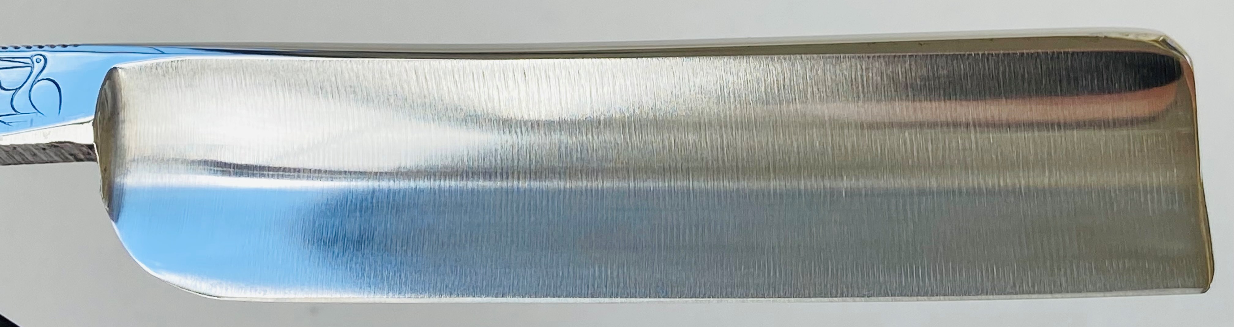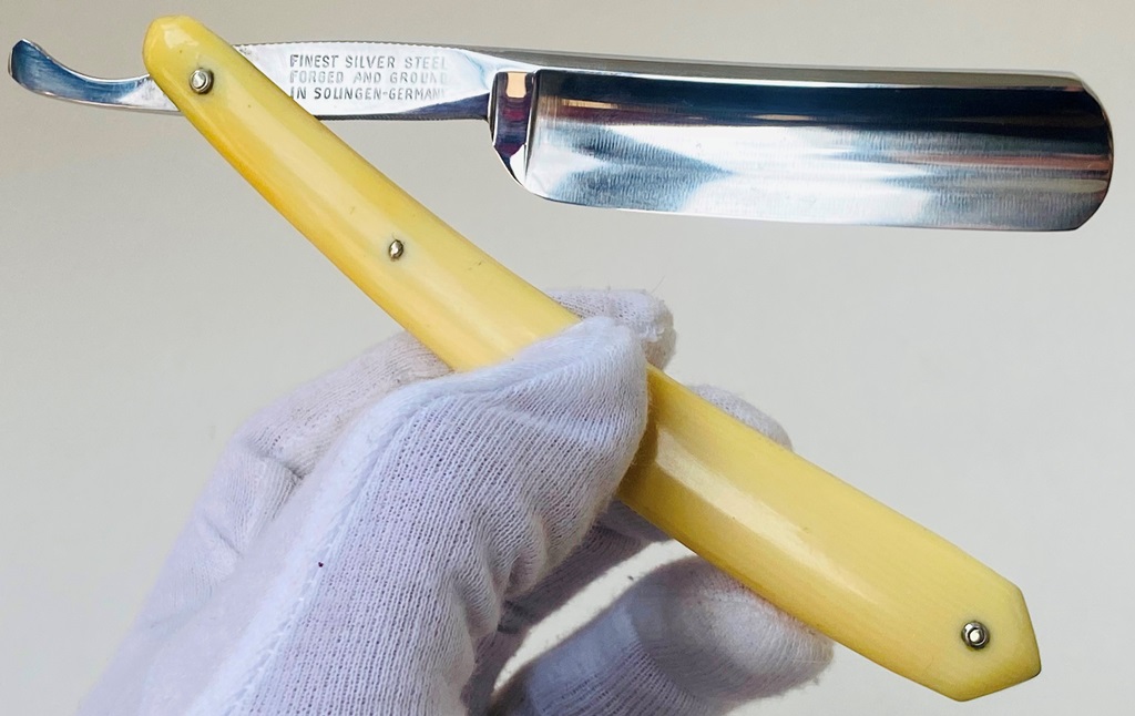 Ширина полотна-21.0 мм. Толщина обушка-5.5 мм. Полная вогнутость. Углеродистая "серебряная" сталь. Середина прошлого века производство. Бритва в пользовании не была. Только оттер от масла с консервации.Заводскую заточку заново переточил,чтобы посмотреть геометрия клинка, с которой оказалось все отлично.Кромочка идеально ровная по всей длине. Заводская шлифовка и полировка полотна. Ничего с бритвой не делалось.Сталь и кромка чистые от разного рода видимых дефектов.Высококачественная "звонкая/поющая" сталь.Мощная трёх-пиновая оправа.Травление чёткое,без потертостей. Коробочку подобрал от такой же бритвы,но в достаточно хорошем состоянии.Перед отправкой бритва будет полностью заточена и доведена до состояния бритья. Цена-20500 р с доставкой. Внимание! Важная информация! Spoiler Show