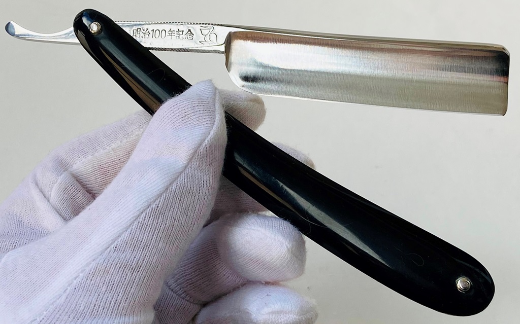 KING PELICAN 25,от одного из самых известных мастеров прошлого-Танифудзи Фукутаро. 谷藤 = Танифудзи. Бритва юбилейная и выпущена с 100-летию династии Мейдзи. Соответственно,бритва примерно 1968 года выпуска. Ширина полотна-21.0 мм. Толщина обушка-6.2 мм! Полная вогнутость. Углеродистая сталь. Бритва изначально была покрыта древней смазкой,с хранения.Можно увидеть на первом фото остатки,которые я стразу не заметил,но оставил как есть.. Бритва не разбиралась и не ремонтировалась. Все полностью в оригинале. Только немного полирнул клинок и оправу,чтобы придать былой предмету.За счет своего толстого обушка бритва достаточно тяжёлая,что очень хорошо будет чувствоваться при бритье и не резаться часто.Идеальная геометрия полотна:кромочка равномерна по всей длине.Бритвы компании Ничири, а также бритвы мастера Фукутаро всегда ценились на самом высоком уровне,за свое отличное качество и красоту.Тут имеет высококачественную "звонкую" углеродку,способную выдавать качественное и чистое бритьё. Бритва заточена и готова к бритью. Цена-23500 р с доставкой.color=#FF0000]ПРОДАН [/color] Внимание! Важная информация! Spoiler Show