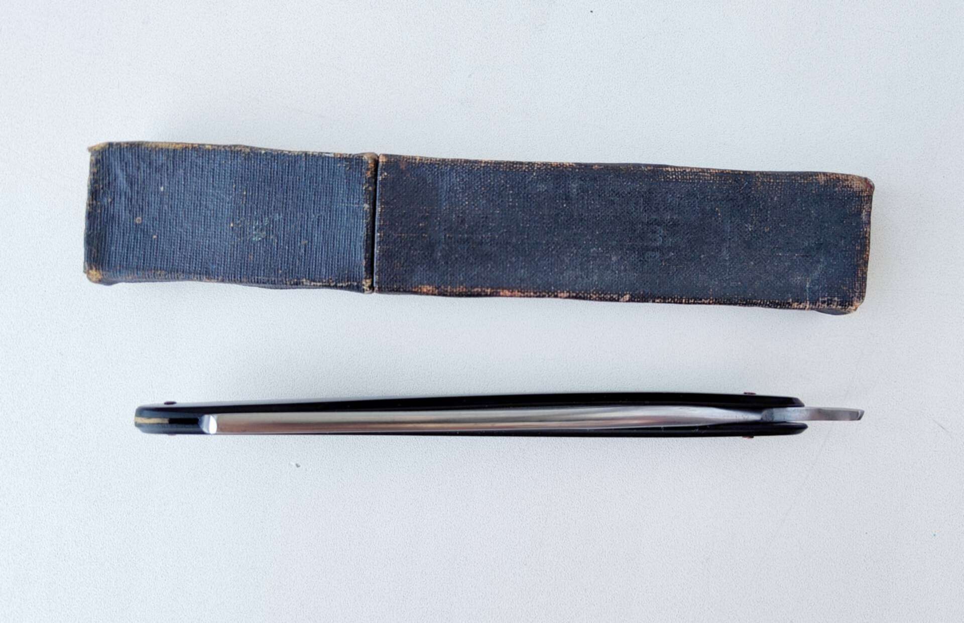 Опасная бритва завода Труд Вача Росинструмент, изготовлена в довоенный период (т.к. в 41 уже начали год на эрле ставить), из ранних, примерно 36-39 г. Ширина полотна 16 мм, все родное, футляр тоже. Вручную почистил и заточил. Подготовлена мной к бритью. На полотне остались следы от старого гринда (кромка чистая и без дефектов). Оправа оригинальная, похожа на целлюлоид, пины родные медь. Сталь тут старая традиционная, отличное удержание кромки, профиль близок к полуклину - то что нужно для жесткой щетины. Клинок интересной и стремительной формы - с выраженной улыбкой. Закрытие клинка не по центру, нужно центровать пальцами, на фото показал. Цена 5000 руб. К бритве рекомендую приобрести ремень для правки опасных бритв моего изготовления из итальянской кожи. Spoiler Show Кто сейчас на конференцииСейчас этот форум просматривают: im-g и 9 гостей | |