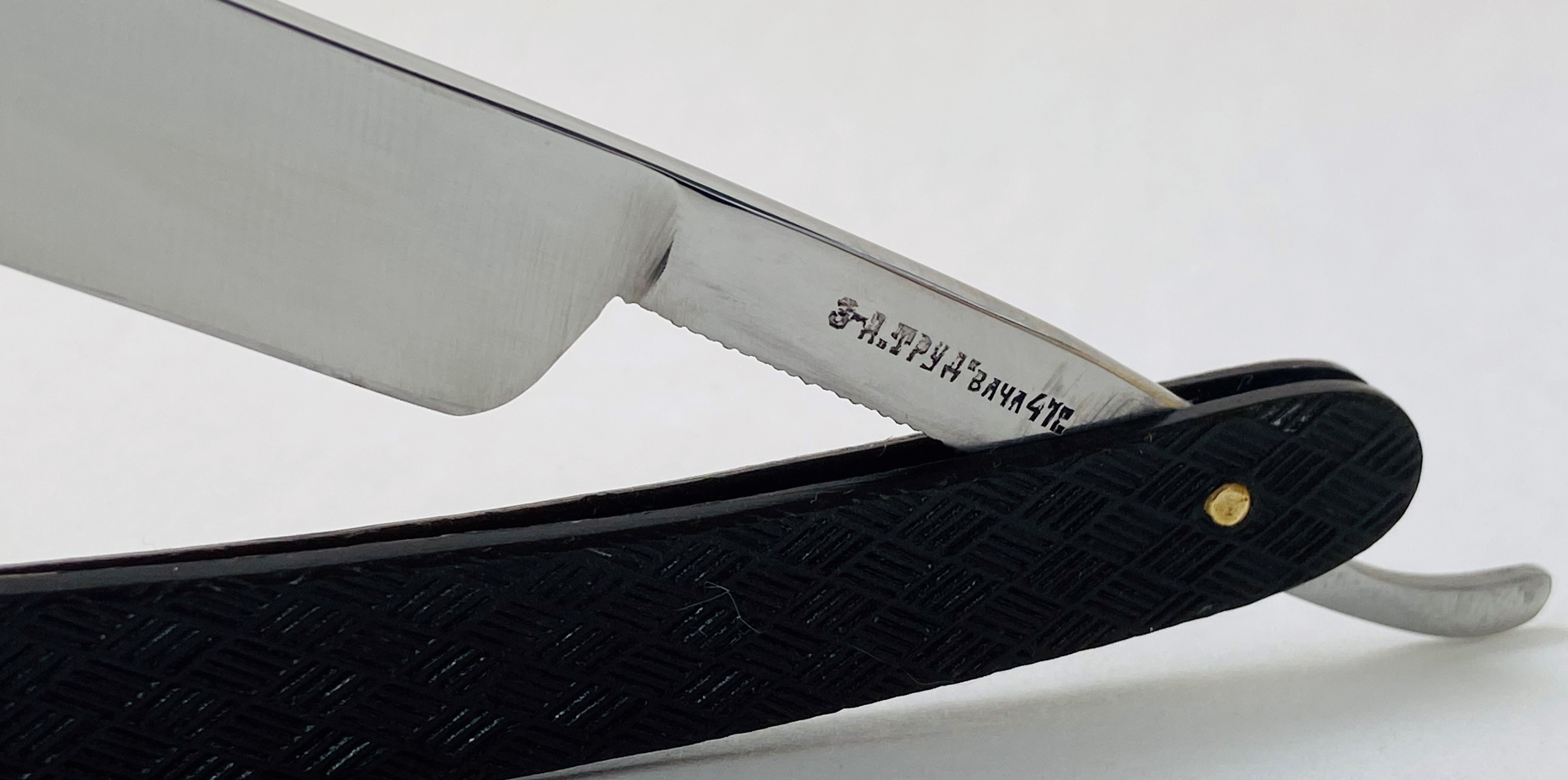 Ширина полотна-21.5 мм. Толщина обушка-5.9 мм. Полная вогнутость. Высококачественная углеродистая сталь. Середина прошлого века производство. Бритва в очень хорошем состоянии,без следов пользования.Не разбиралась! Немного освежи на самых тонких абразивах полотно,чтобы удалить микроцарапинки и придать металлу былой блеск. Умеренная полировка.Гравировка чёткая,без потертостей.Удобные пластиковые накладки дают возможность не так пристально следить за текущим уходом бритвы после бритья и не получить налёт ржавчины в районе осевого пина и эрля.Идеальная геометрия полотна:кромочка равномерна по всей длине и еле заметна. "Звонкая и поящая" сталь также способна выдавать качественный финиш при тонкой доводке на камнях,а также комфортное и чистое бритьё. Бритва подойдёт как новичку,в качестве стартовой,но также любому пользователю. Цена-15500 р с доставкой. Внимание! Важная информация! Spoiler Show
