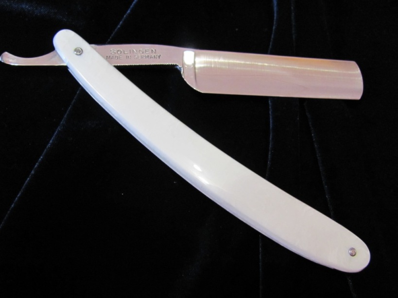 Бритва новая ( примерно 50-60 лет), заводские риски на месте, не эксплуатировалась, бритва первый раз легла на камень вчера и прошла успешно свою первую заточку, полностью готова к работе. Параметры: Ширина 18мм, обух 4.8мм, длина 75 мм Ручка белая "под перламутр", на полотне рисунок GOLD diamant stahl -нанесен таким способом, что удалить его можно очень легко, странно но факт. ПРОДАНА Show