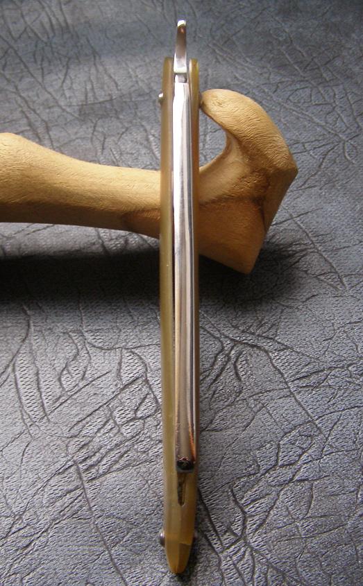 Spoiler Show По производителю на форуме информация есть. Бритва восстановлена и заточена. Ширина лезвия 7/8, обушок - 5,1мм Оправа и пины оригинальные (оправа - рог). Цена: 110 евро (доставка за мой счёт, оплата - "Приватбанк", "Контакт", "Золотая корона", "Western Union") Spoiler Show