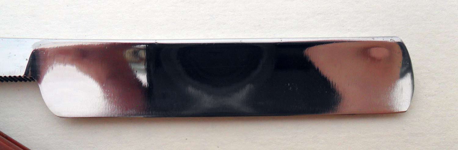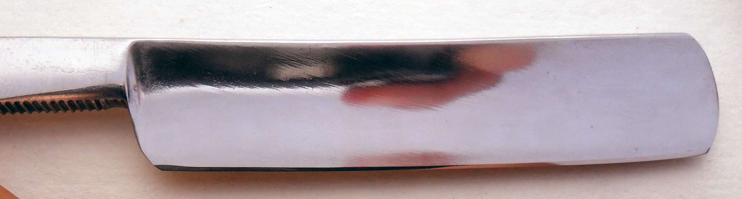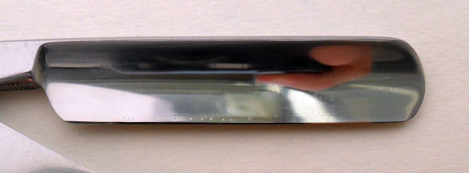 Сведения о производителе: http://britva.ru/forum/viewtopic.php?f=28&t=1149" onclick="window.open(this.href);return false; Судя по форме клинка и шрифту надписи предполагаю конец XIX века, менее вероятно начало XX века. Ручка - материал, предшественник современной микарты - пресованный картон с клеем. Ручка явно фабричная, родная или нет- под вопросом. Клинышек из металла. Геометрия quarter hollow, отлично точится. Очень мягко снимает щетину, хотя требует немного большего навыка в сравнении с обычными холлоу граундами. Естесственно, заточена и полностью готова к бритью. Ширина бритвы 19 мм, толщина обуха 4,5 мм.