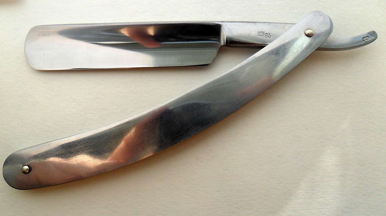 Дата производства, думаю, где-то в районе 60-х годов, на бритве не указана. Заточена и полностью готова к бритью. Ширина полотна 16 мм, толщина в обухе 4 мм.
