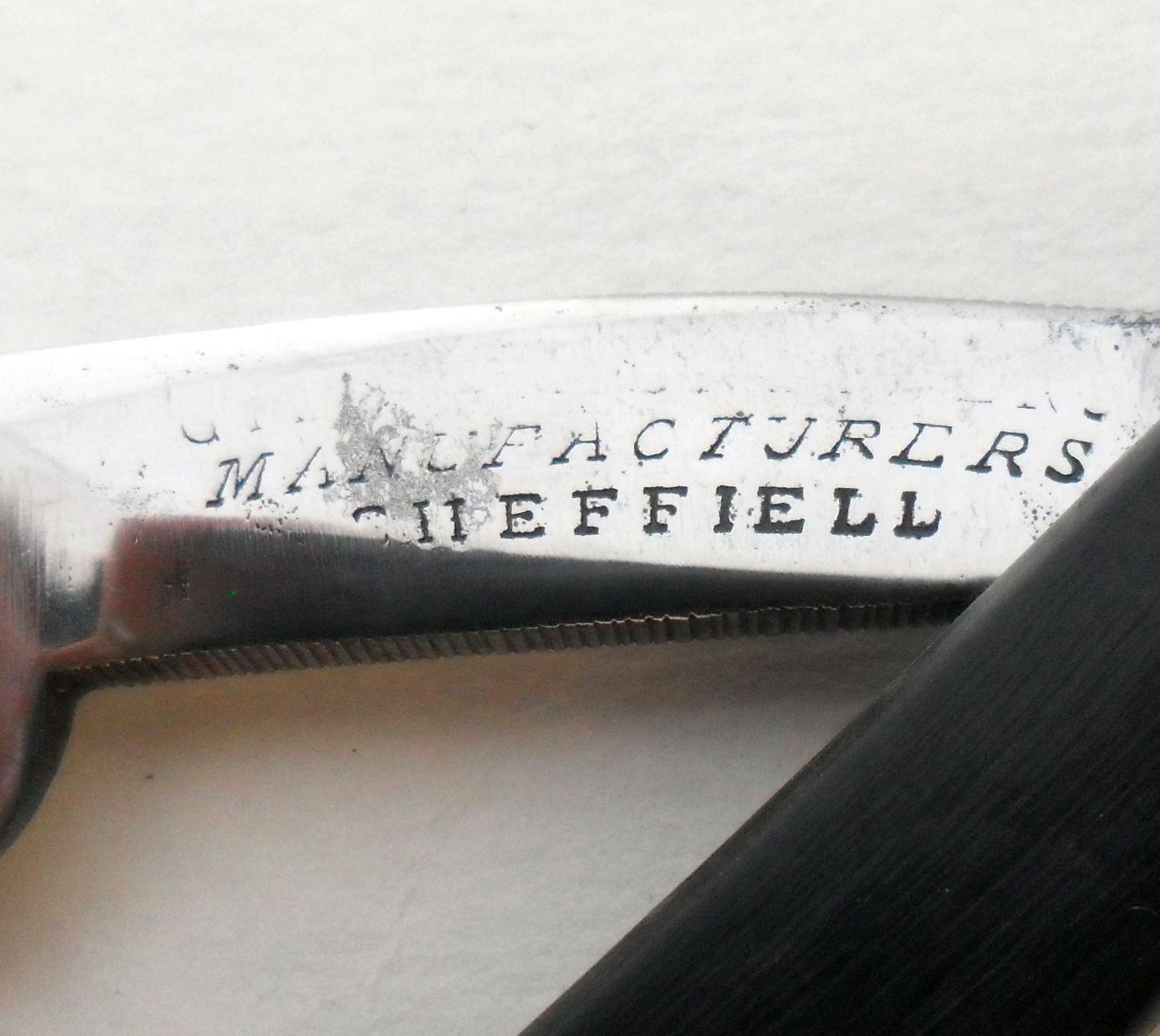 Сведения о производителе http://britva.ru/forum/viewtopic.php?f=28&t=1118" onclick="window.open(this.href);return false; Ручка - материал, предшественник современной микарты - пресованный картон с клеем. Ручка явно фабричная, родная или нет- под вопросом. Клинышек металлический, пины разного оттенка. Классический Шеффилд - отлично точится и приятно бреет. Естесственно, заточена и полностью готова к бритью. Ширина бритвы 18 мм, толщина обуха 5 мм.