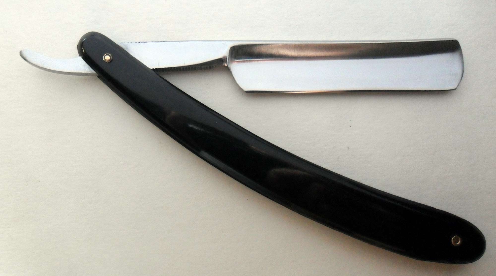 Сведения о производителе: http://britva.ru/forum/viewtopic.php?f=28&t=1663" onclick="window.open(this.href);return false; Ручка - рог в отличном состоянии. Клинышек - металл. Сталь немного тверже и звонче, чем обычно на английских бритвах. При бритье слышен шуршащий звук, подозреваю, что это то самое "пение". Естесственно, заточена и полностью готова к бритью. Ширина бритвы 18 мм, толщина обуха 5,5 мм.