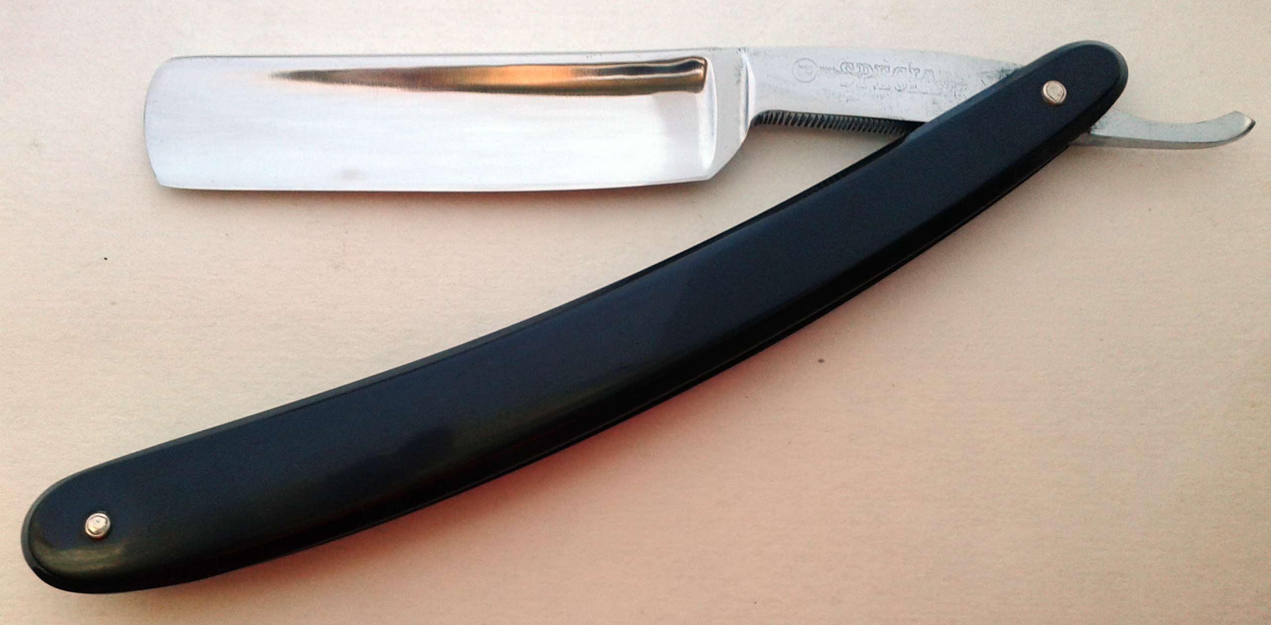 Сведения о производителе: http://www.britva.ru/forum/viewtopic.php?f=28&t=1663" onclick="window.open(this.href);return false; Ручка - эбонит, в неплохом состоянии. По видимому, ручка и пины родные. Опробовал бритву - отлично бреет, прекрасный образец английского холлоу граунда. Естесственно, заточена и полностью готова к бритью. Ширина полотна 18.5 мм, толщина в обушке 5 мм. Цена 70 евро, доставка включена.