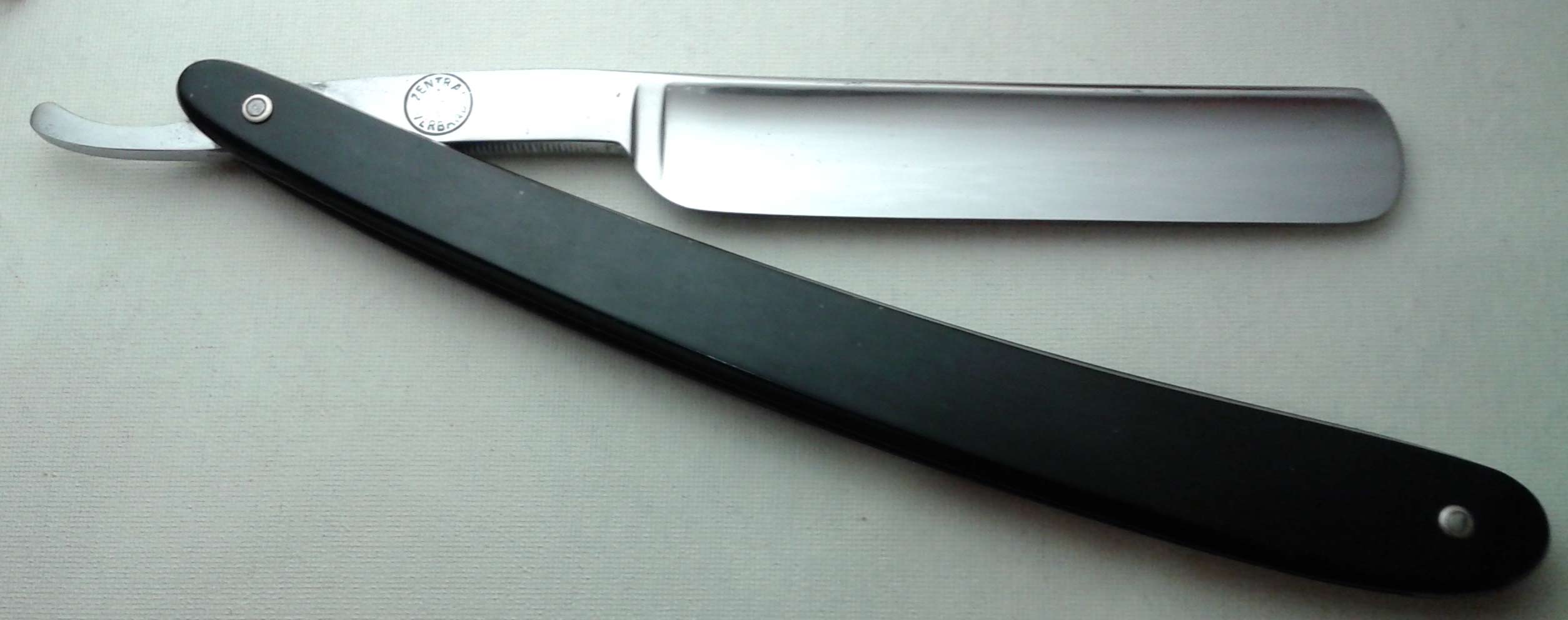 Обратная сторона эрля: ZENTRAL VERBAND. Надпись на полотне: CARA Бритва произведена в Германии, скорее всего в 30-е годы. По ссылке http://www.archivingindustry.com/cutler ... makers.htm" onclick="window.open(this.href);return false; есть строка "Einkaufsgenossenschaft deutscher Messerschmiede, Mannheim in 1932. Brand name: 'Cara'. Razors and/or razor blades." Ручка - эбонит, в отличном состоянии, скорее всего ручка и пины родные. Очень тонкая, легкая и звонкая бритва. При этом точилась бритва очень мало - возможно, вообще никогда не затачивалась после завода. Заточена и полностью готова к бритью. Ширина полотна 14 мм, толщина в обушке 4 мм. Цена 50 евро, доставка включена.