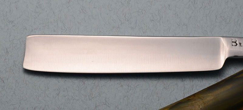 На бритва выбито, скорее всего, имя не производителя, а продавца из Лондона. Однако изготовлена она явно в Шеффилде, видел фото бритв с этим клеймом, на которых с другой стороны эрля выбито Sheffield, Eng. Ручка из рога, в хорошем состоянии, однако имеются неровности поверхности - видно на фото, прочности никак не угрожают. Заточена и полностью готова к бритью. Ширина полотна 17 мм, толщина в обушке 4.5 мм.