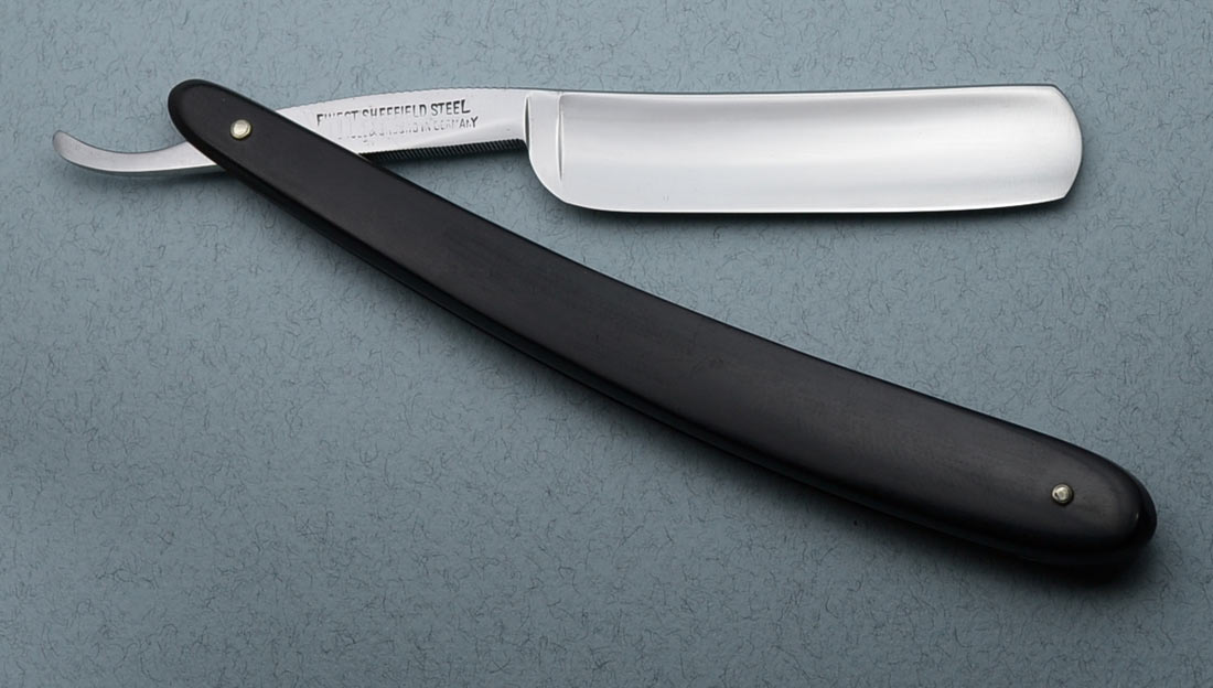 Насколько я понимаю, бритва изготовлена в Германии по заказу американской фирмы. Ручка из кости, в приличном состоянии. Заточена и полностью готова к бритью. Ширина полотна 19 мм, толщина в обушке 5 мм.