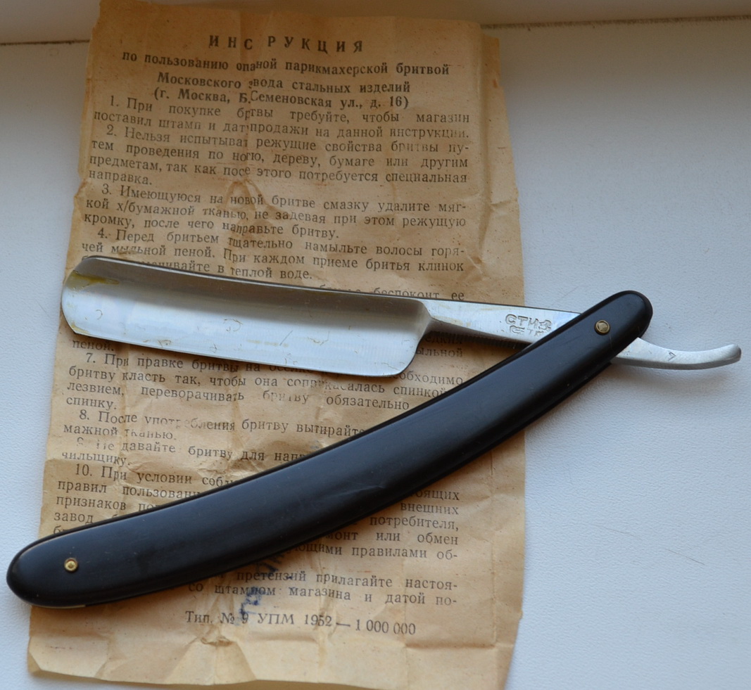 СТИЗ, 70г. Бритвы выпущены в свет(проданы) 7го марта 1970г. Партия была закуплена в парикмахерскую. Новые в смазке в родных коробках.Хранились правильно, в сухом месте, ржавчины нет, шарниры чистые. Ширина 5/8. В наличии 1 штук. с бежевыми ручками. Продано Стиз70 Show Re: Продаётся от FransСТИЗ, 70г. - 1шт. беру с мойкой и заточкой. Спасибо.