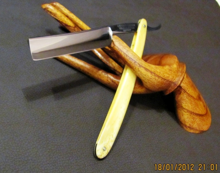 Параметры: ширина 16,5мм, обух 4,3мм. Ручка из кости, ровная, без потерь. Возраст- скорее всего довоенный выпуск на экспорт. Бритва прошла процесс реставрации и заточки лично мной, пины , геометрия, клеймо производителя были сохранены. Продано Oxford Razor Show