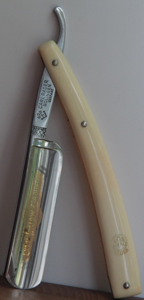 Осталась последняя пора Иссардов: 6/8 и Гном 5/8. Последний шанс забрать пару бритв от известного производителя, разных моделей и форм лезвия и в идеальном состоянии. Вот такого интересного CARL RADER SOLINGEN предложу. Кучку подобных бритв уже раньше выставлял http://britva.ru/forum/viewtopic.php?f= ... 9&start=80" onclick="window.open(this.href);return false; Ширина полотна-21мм Толщина обушка-5.5мм Полная вогнутость. Бритва непользованная и в очень хорошем сохране.Не ремонтировалась и не разбиралась. Исключение-небольшое пятнашко окисления у носика, от долгого хранения.Чистить также не стал, чтобы сохранить картинку и оставить заводской гринд. Удобная, трёх-пиновая ручка. Удобный, красивый экземпляр. Будет заточена впервые. Право первой ночи предоставлено счастливчику-новому хозяину. Цена-8500 с доставкой.ПРОДАН Spoiler Show