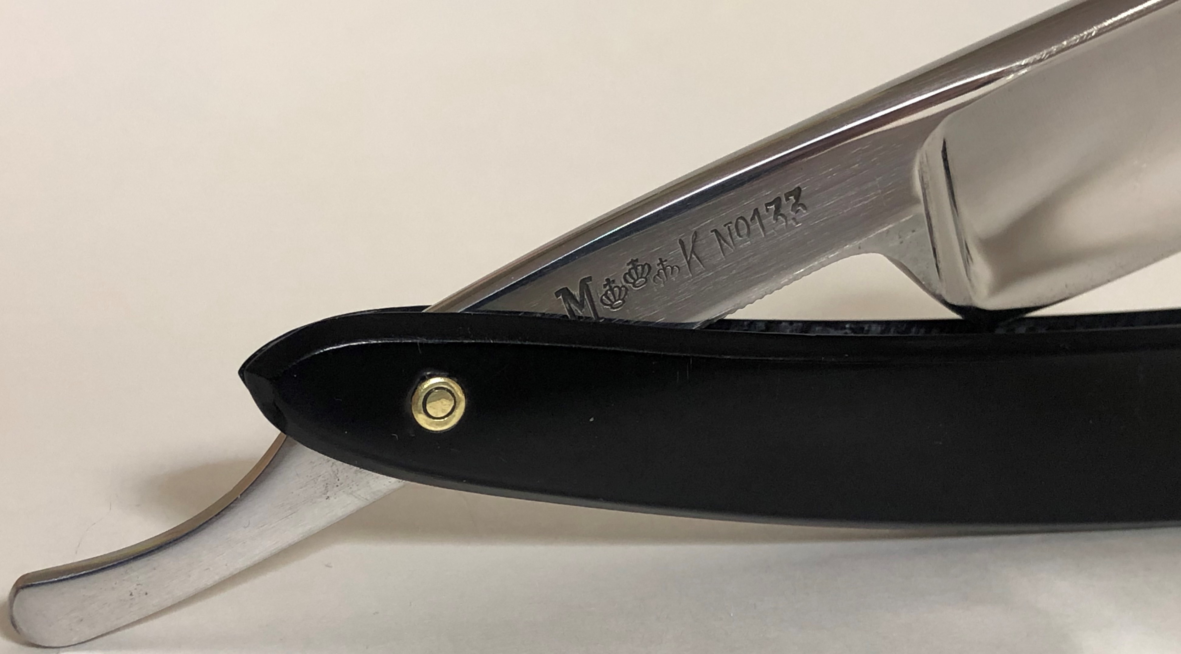 Бритва также в прекрасном состоянии для своих лет. Также была разобрана и приведена в порядок.Был убран небольшой скол в 0,5 мм, поэтому тут полотно немного Уже.По всей видимости эти две бритвы были из одной партии, так как характер нанесения штампа на обратной стороне похожи между собой. Небольшая непроштампованность имеется.Идеальная геометрия.Кромочка равномерна по всей длине.Сталь чистая.Бритва красивая, тяжёлая, с отличной сталью, способную выдавать чистое и мягкое бритье. Проверено лично..Заточена и лично протестирована.Родной коробочки не имеется.