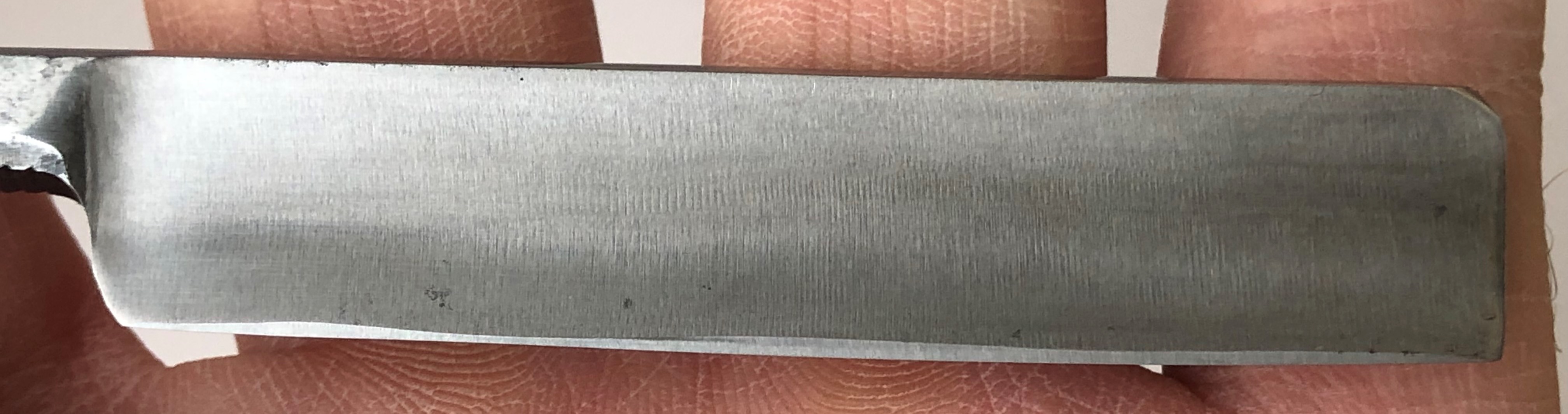 Ширина полотна-18.5 мм. Толщина обушка-5 мм. Доина РК-55 мм. Углеродистая сталь. Форма лезвия-еврокамисори Середина прошлого века производство. Бритва в очень хорошем состоянии. Была разобрана, проведены косметические работы и снова собрана, с заменой оригинальных пинов на немецкие втулки.Идеальная геометрия.Кромочка равномерна по всей длине полотна. Укороченный клинок,выполненный в классическом японском стиле камисори.Для тех, кто хочет попробовать что то оригинальное в деле, вот такой недорогой экземпляр будет в самый раз. Заточена и готова к бритью. Цена-6500 р с доставкой. ПРОДАН[/b] Spoiler Show Spoiler Show