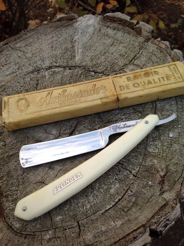 Ручка родная, в прекрасном состоянии, клинышек кость. Нижние пины от Егора. Полотно в хорошем сохране. Кромочка- ниточка! Длина режущей кромки 83 мм!!! Заточка как всегда N*X*S Spoiler Show Серьезный немец. Ширина полотна 6\8. Есть небольшие цяточки под обушком. Родной. кофр. Интересная форма. Бритье на "5+" Продана. Spoiler Show