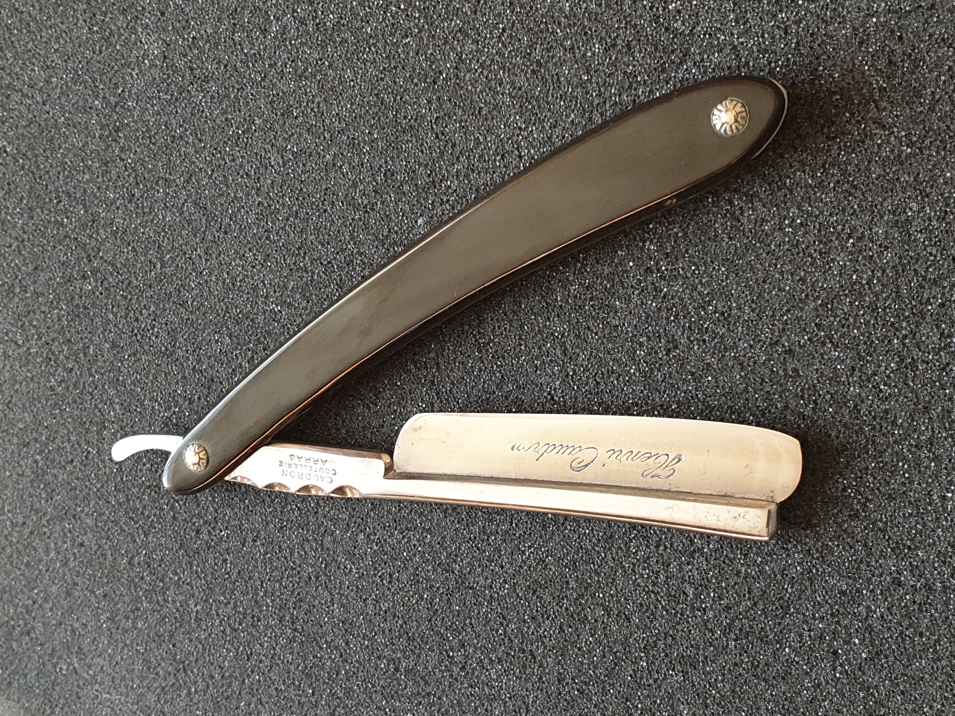 Продаётся от S&T76. Изящный французский фреймбэк от Henri Caudron Coutellerie Arras, ширина клинка 19мм, ручка из рога, все родное, бритва не разбиралась. Бритва заточена.