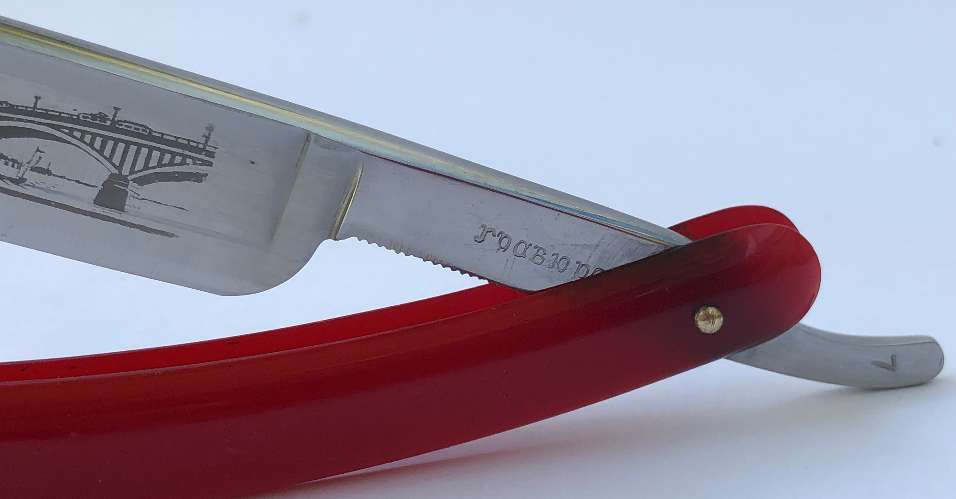 Бритва в хорошем состоянии.Была разобрана, приведена в рабочее состояние и снова собрана, с заменой пинов и добавлением внутренних шайб.Идеальная геометрия клинка:кромочка равномерна по всей длине.Сталь чистая, без дефектов.Красивая оригинальная ручка.Заточена и готова к бритью.