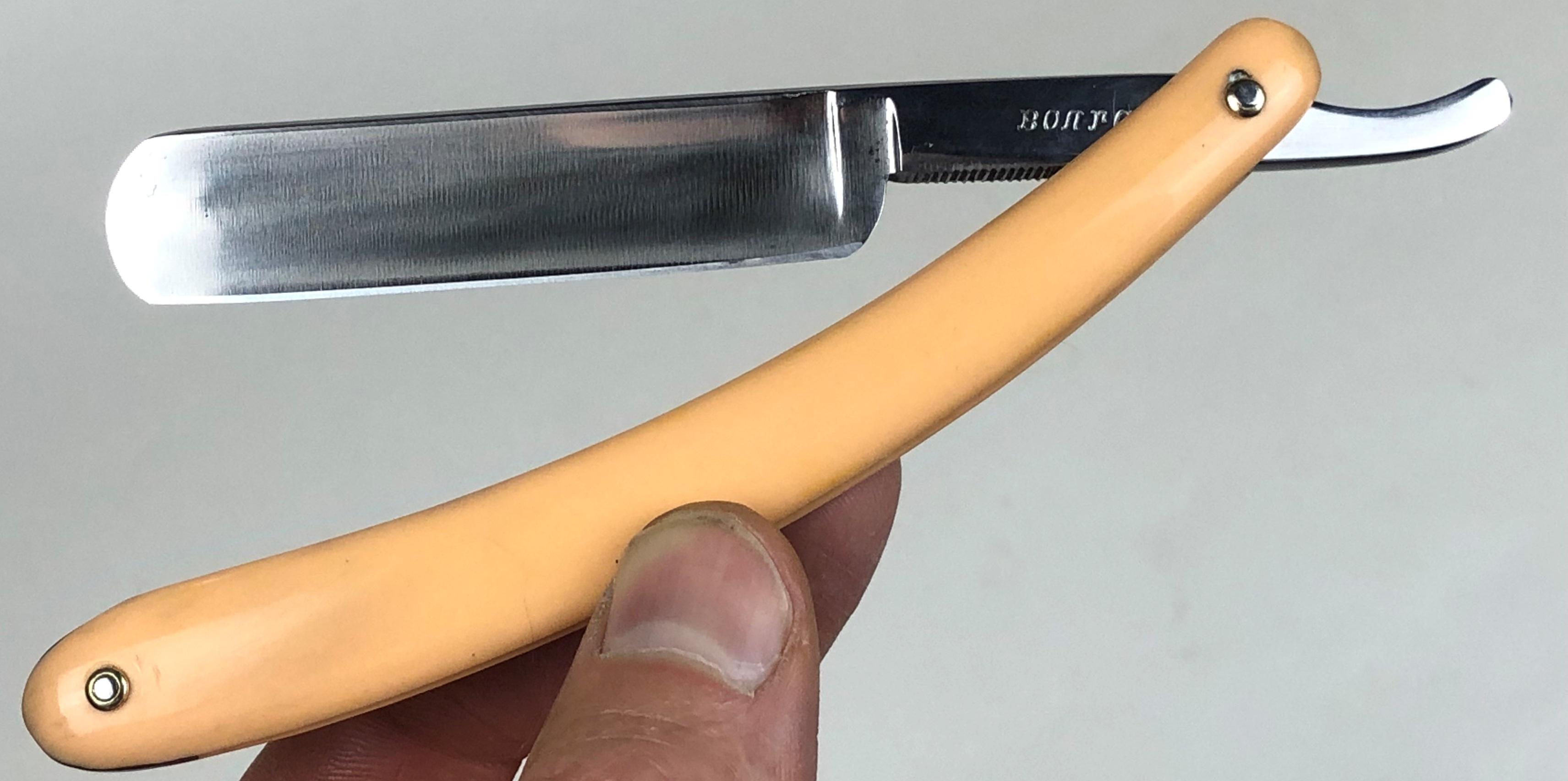 Бритва импортировалась в Российскую империю, о чем гласит надпись на клинке:-"Ручаюсь на 3 года".Что на современный русский язык может означать:-"Гарантия 3 года".