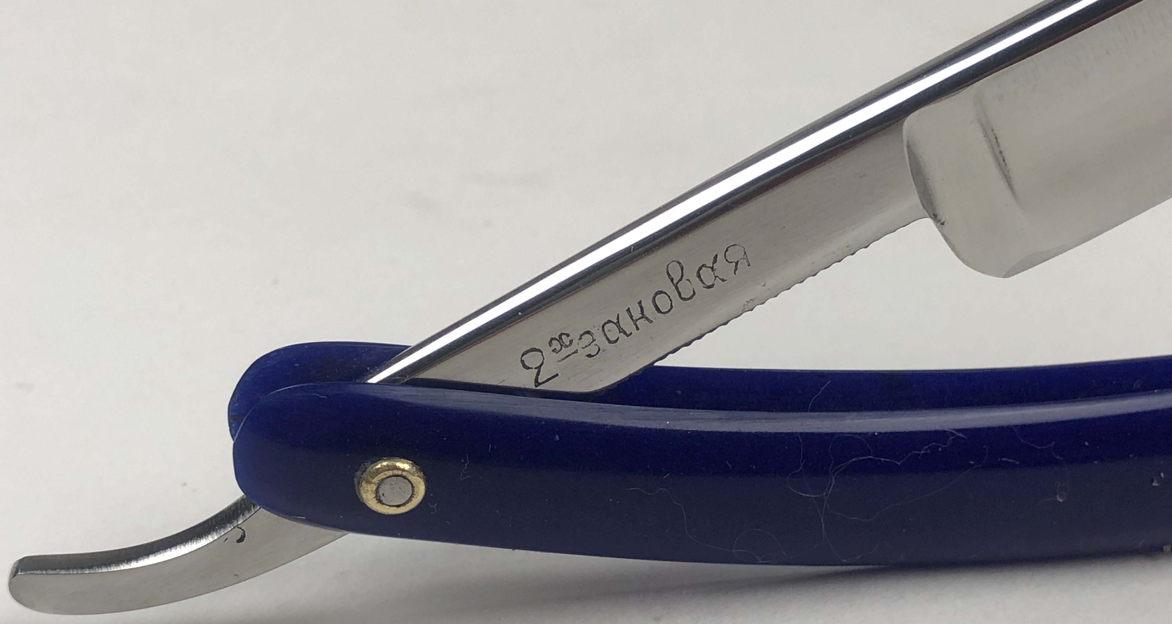 Ширина полотна-23 мм или 7/8. Толщина обушка-6.5 мм. Длина РК-50 мм. Полная вогнутость. Углеродистая сталь. Примерно 50-60-е годы прошлого века. Бритва в прекрасном непользованном состоянии. Заводская шлифовка и полировка полотна.Была разобрана, чтобы немного почистить район осевого пина и добавить внутренние шайбы. Фирменная "ступенька" полотна также присутствует. Идеальная геометрия клинка:кромочка равномерна по всей длине. Прекрасный и достаточно редкий экземпляр с таком состоянии. Заточена и готова к бритью. Цена-20500 р с доставкой.ПРОДАН Spoiler Show