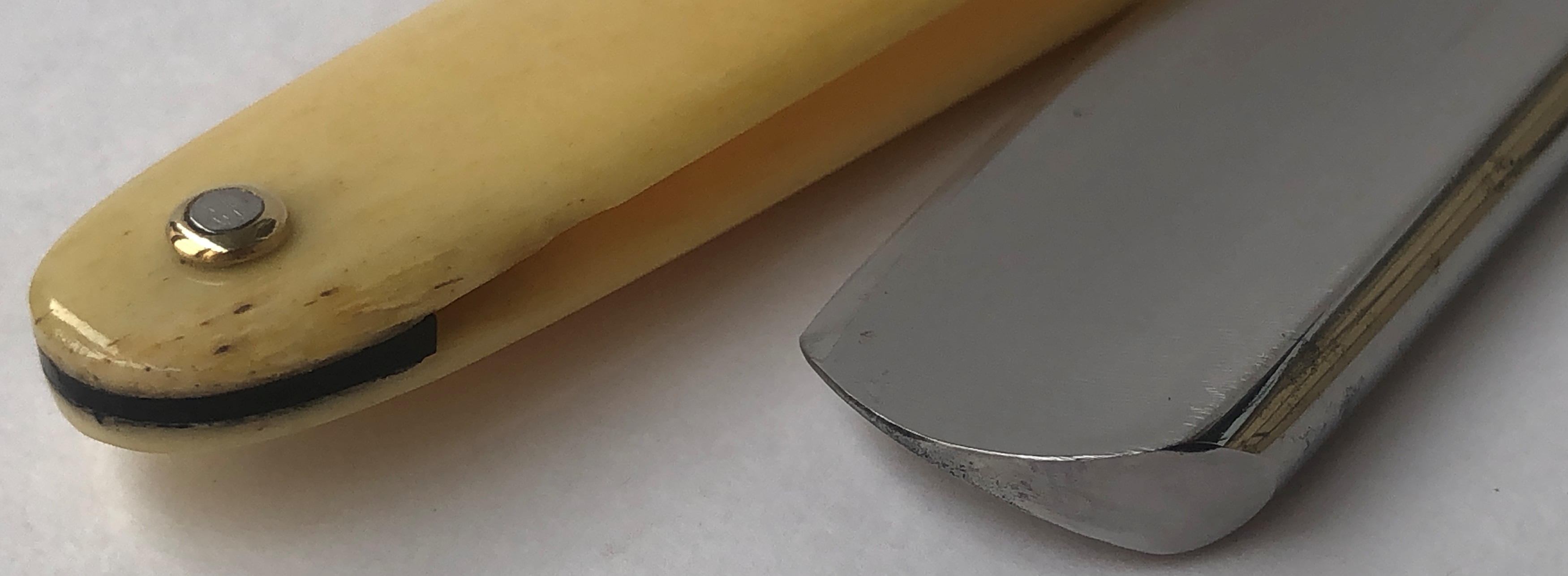 Бритва в хорошем состоянии. Была разобрана, немного почищена и снова собрана,с заменой пинов на втулки и добавлением внутренних шайб.Хоть кромочка и равномерна по всей длине, но присутствует небольшая "волна".УтОчка пятки при заточке, в связи с особенностью геометрии донного клинка. Все это на качество бритья не влияет, зато влияет на конечную стоимость бритвы.